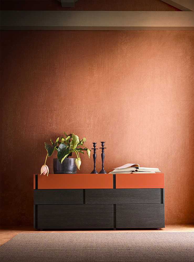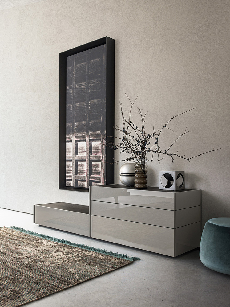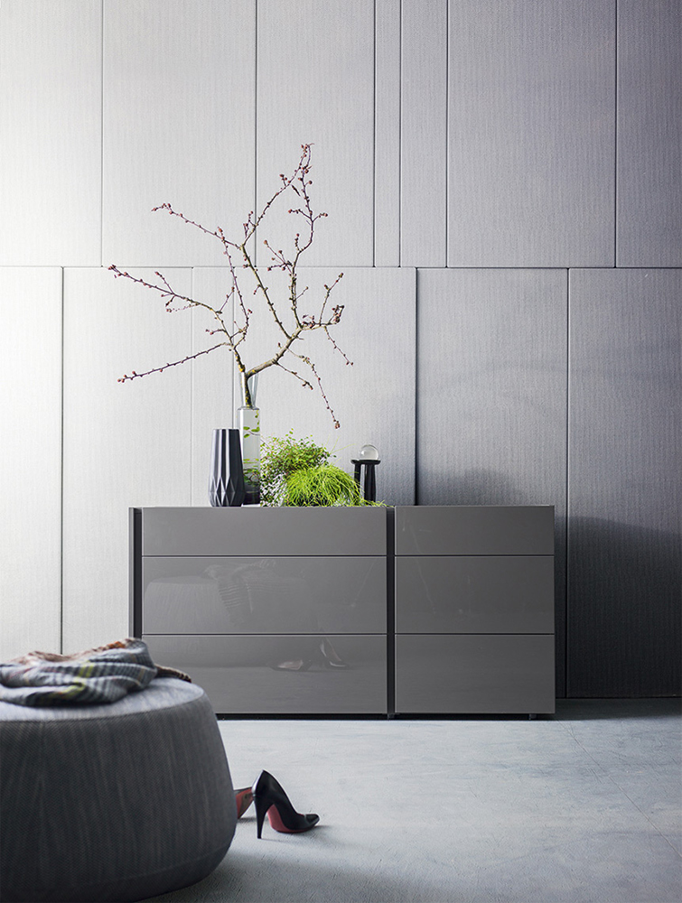 Da-Do system is a modular bedroom suite distinguished by superior modularity and versatility. Accurate and linear, it combines two different finishes, one for the exterior and the other for the top and vertical strip which acts as a handle grip. By simply stacking the modules or securing them to the wall, Da-Do offers infinite composition possibilities better to exploit the available space and customize the bedroom in a unique fashion.