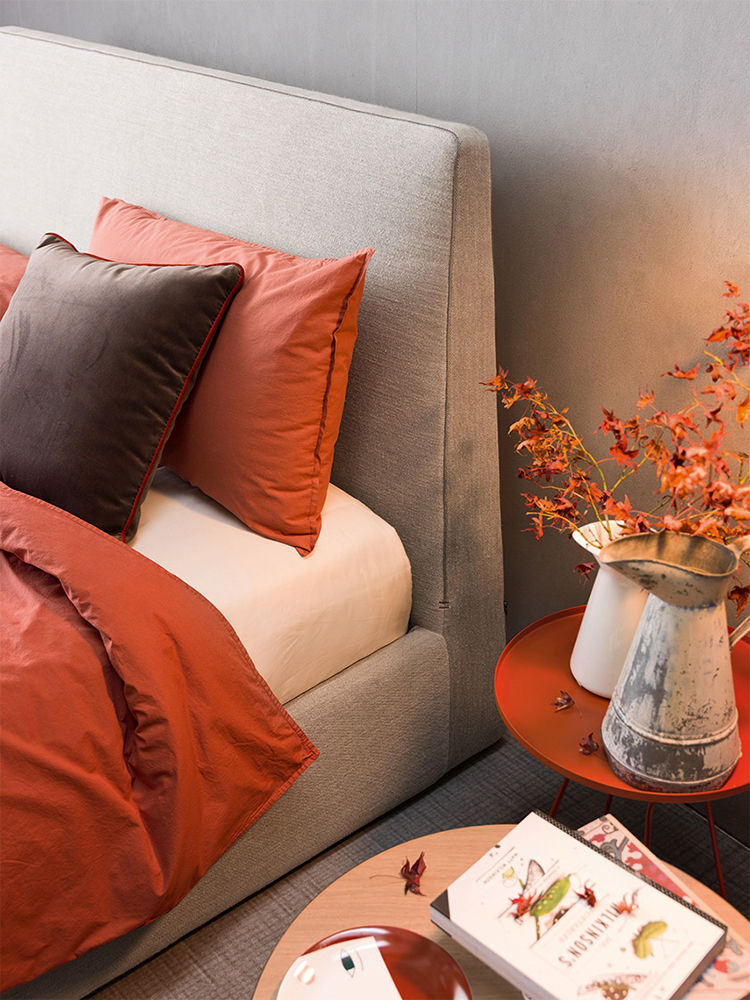 The eternal shape of this padded bed is combined with unexpected detailing in the form of the available stitching options. It comes in a wide range of sizes, including with storage possibilities.