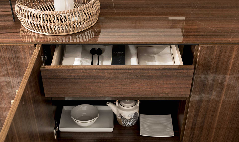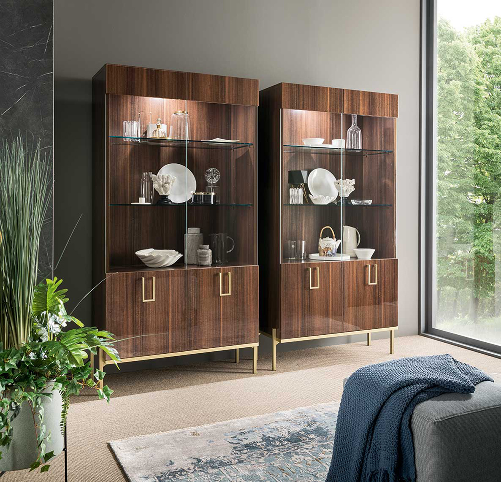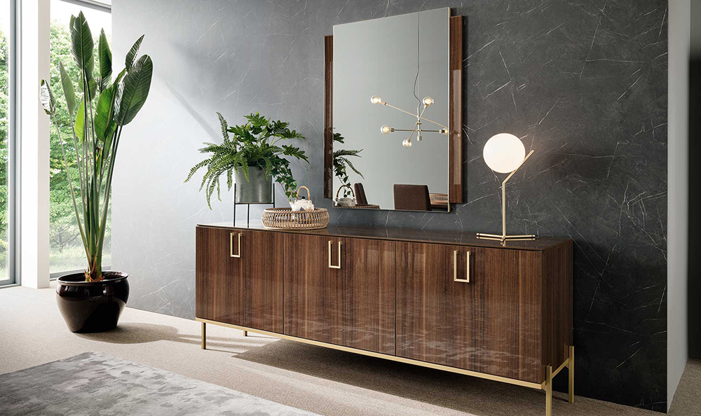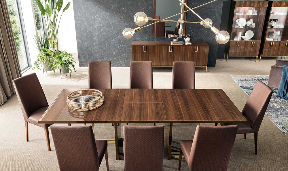 The Extendable Dining Table is offered in two sizes. Chairs feature eco-leather upholstered seat and back that is super easy to clean. Mid Century dining set also has a matching Buffet, Mirror, and 2-Door Curio to complement your dining room interior and fit all your dinnerware, glassware, and cutlery.