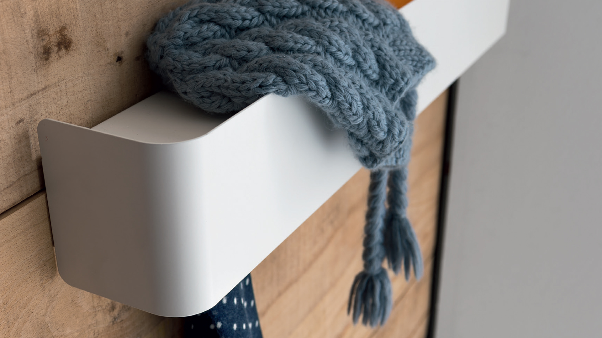 Bumper is an ingenious and ironic furnishing accessory that can be used as coat rack and as shelf or tray at the same time: its curved metal structure conceals 4 hooks in the lower part and a shelf/tray on the top where you can hold small objects, for example those that you want to have within reach when returning or leaving home. It was conceived as furnishing idea for halls, but it can also prove to be useful in any other corner of the home: in living areas, bedrooms and even kitchens or bathrooms.