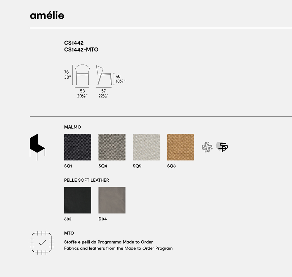 A perfect mix of elegance and functionality, the AMÉLIE chair is perfect for decorating the dining room and living area. Discover all the available finishes!