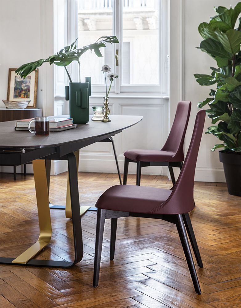 The use of state-of-the-art processing technologies has made it possible to produce a contoured shell in cold-foamed polyurethane, a material that preserves its characteristics over time.