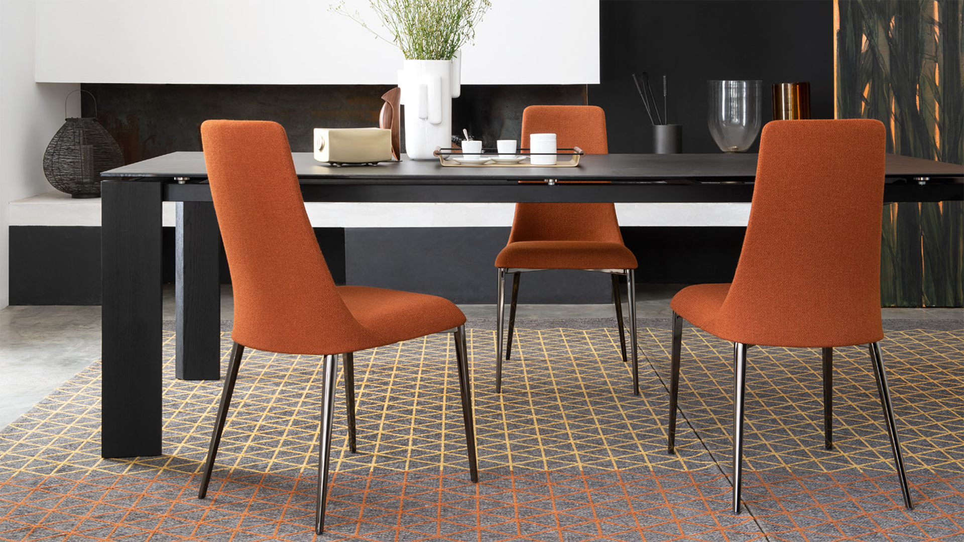 Given the wooden legs, for the dining area we recommend pairing the chair with a table of the same material.