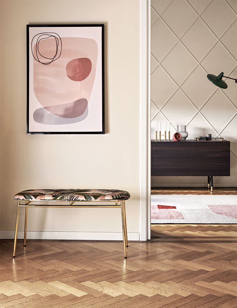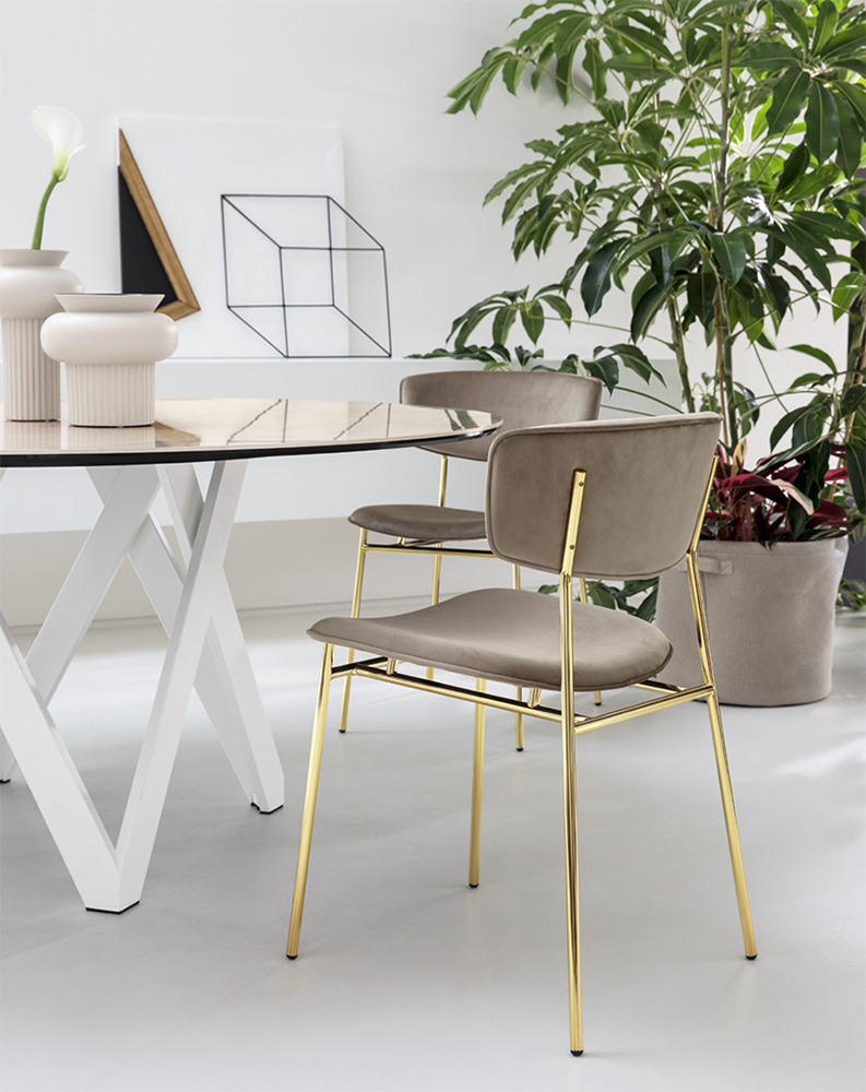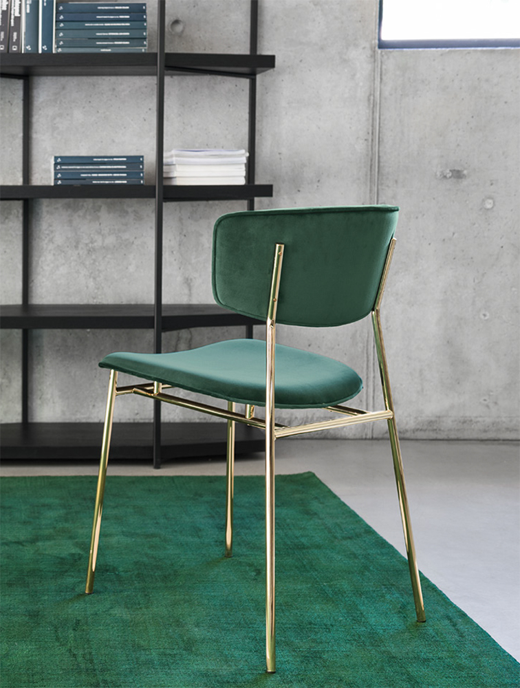 Consistent with the trends of those years, Fifties is characterised by a nimble silhouette that combines a metal frame with classic, elegant velvet, leather or leatherette boasting a soft and silky feel.