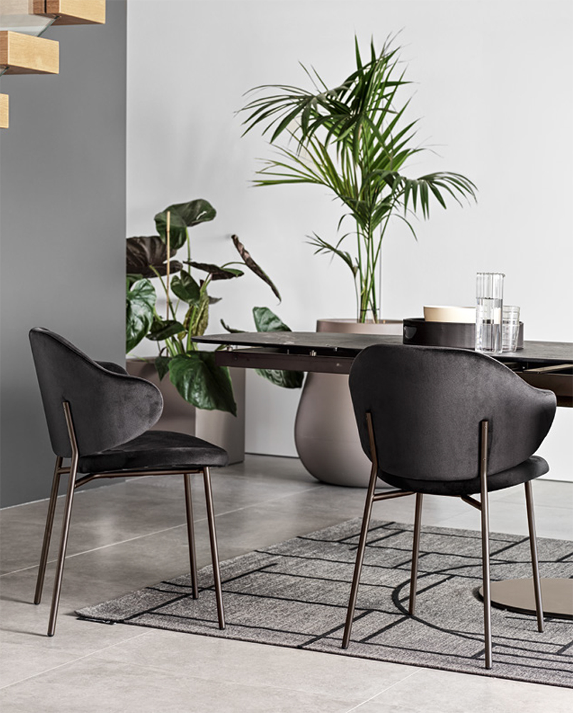 Calligaris `50s-style offering continues with the new Holly family: this chair features a haute-design chiselled metal frame.