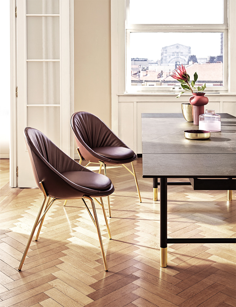 Enveloping, fluid and sensual lines for Lilly, a stylish chair with a soft feel.