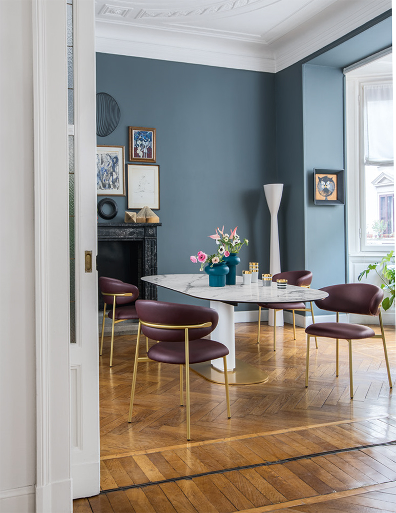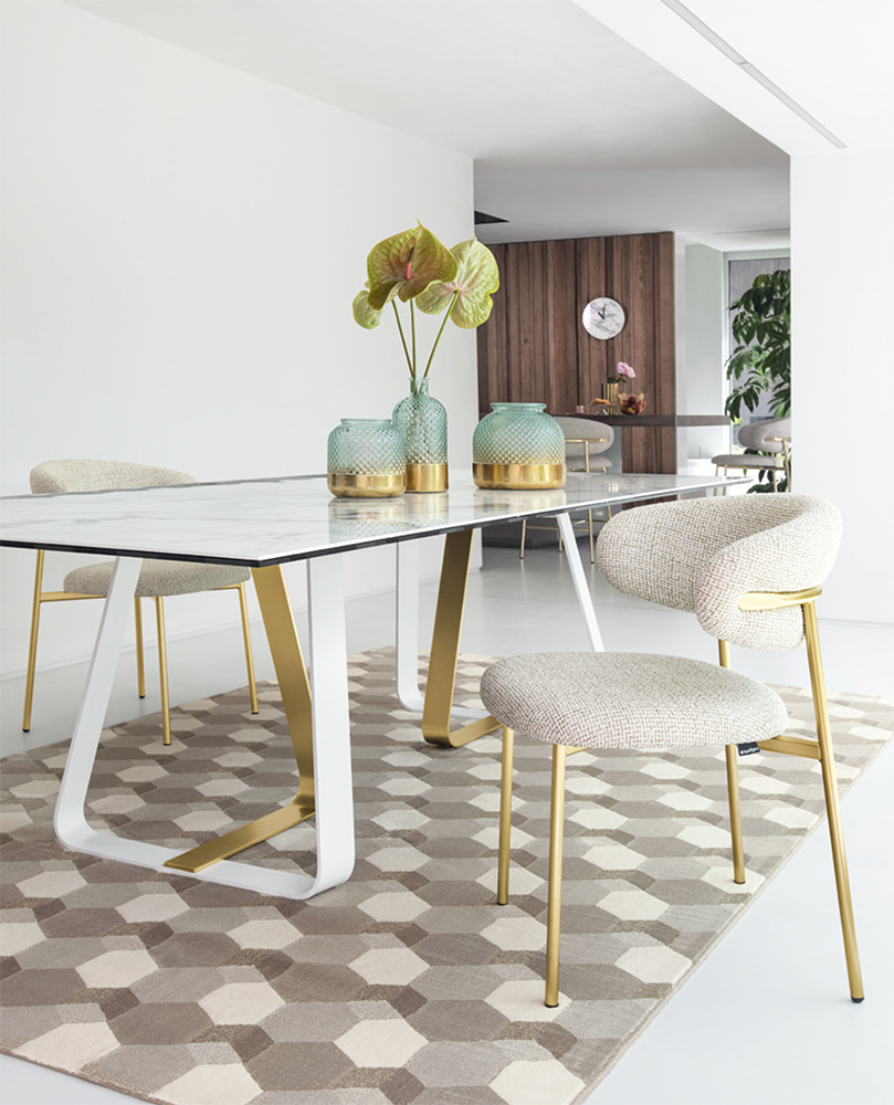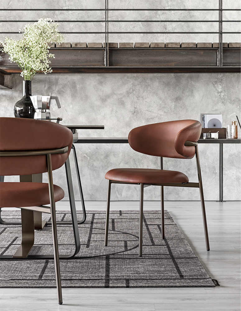 Oleandro is a padded chair with a metal base.