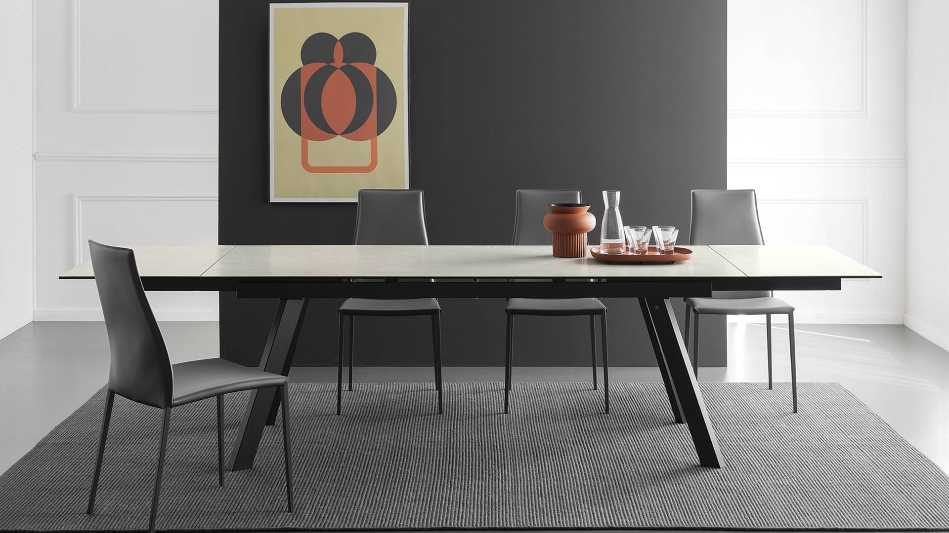 Rigour, formality, solidity. The PONENTE extending table has a dynamic and modern design.
