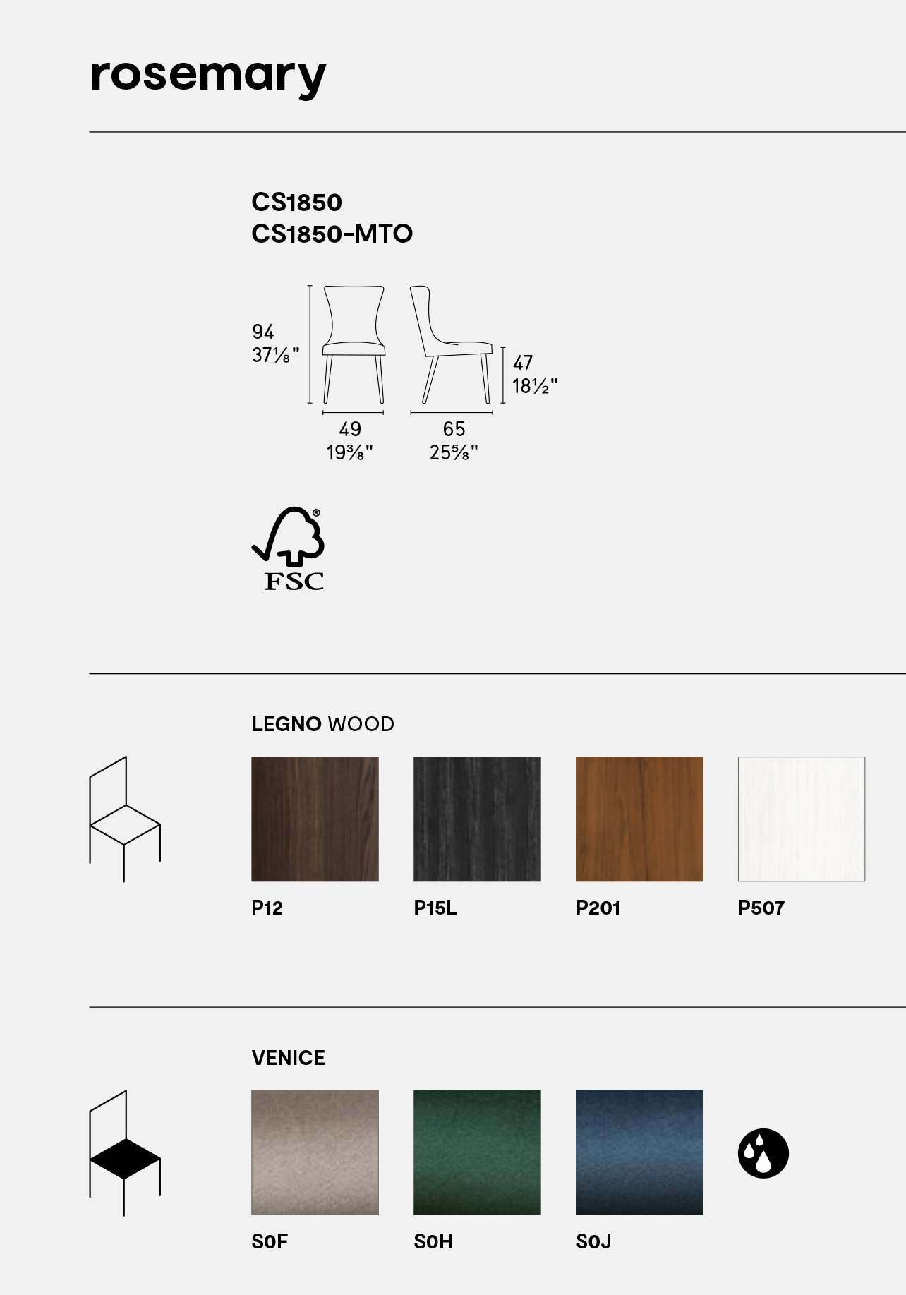 Rosemary, sleek and sinuous, with its padded shell and high backrest styled with two flexible upper wings handles these functions effortlessly ensuring maximum comfort.