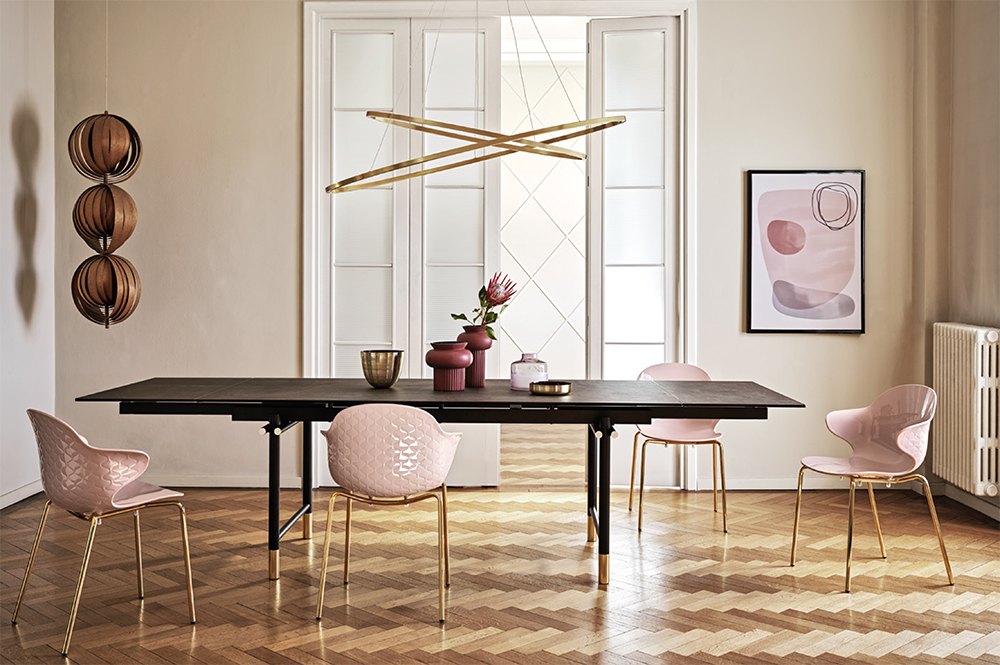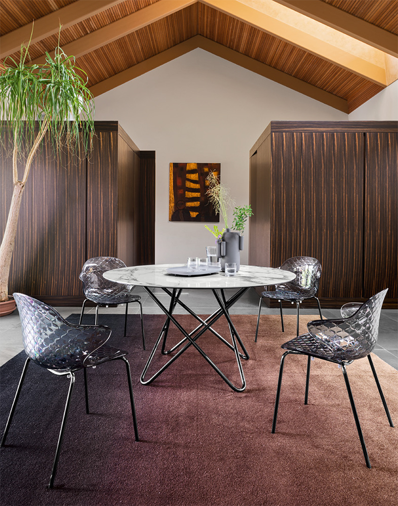 A creative spirit, crossroads between form and function, distinguishes the Saint Tropez chair, boasting attention to detail and a sophisticated design with a quilted-effect backrest.