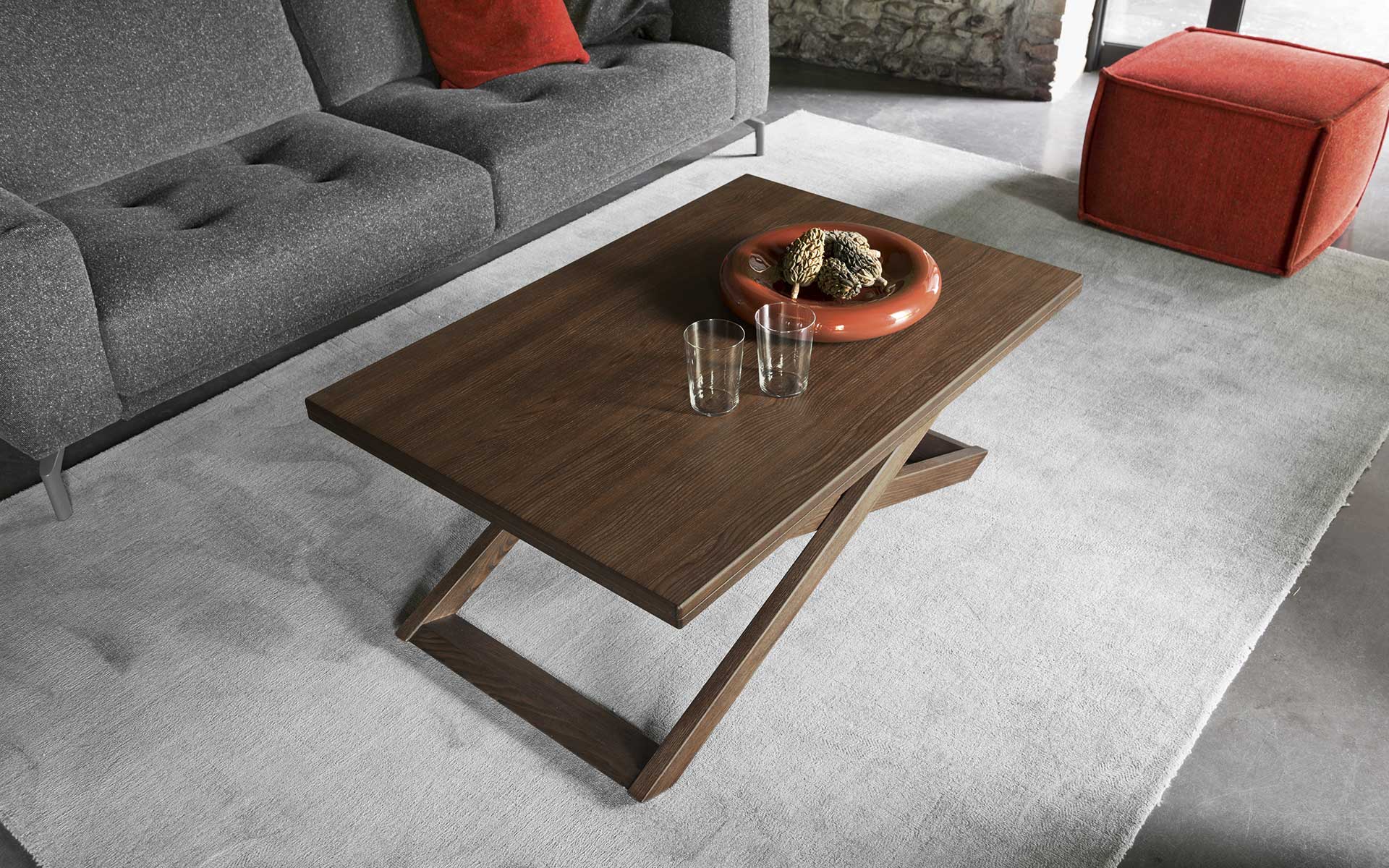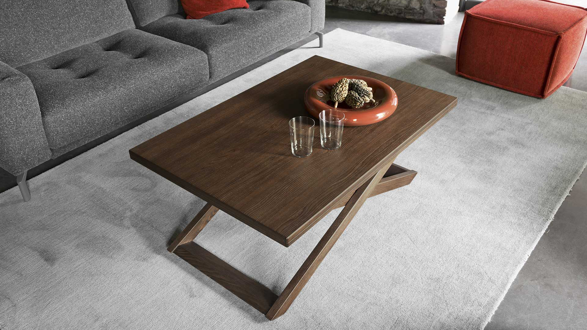 Sottosopra is a fresh, joyful revisitation of the table with the high-low mechanism, featuring an ash base with a curved end.