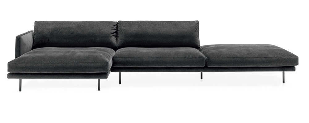 Contemporary stylishness and supreme comfort, this fixed or modular Mies sofa has deep inviting seat cushions that beckon you to sink in and relax.