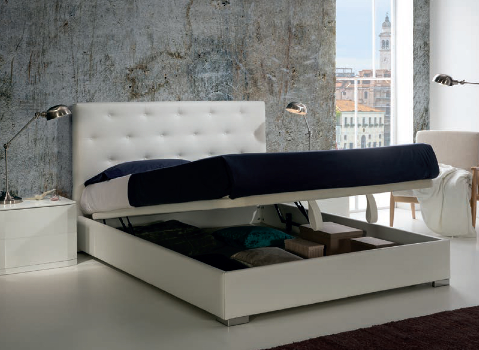 COMPLETE BED WITH STORAGE DIVAN AND GAS LIFTING MECHANISM.
