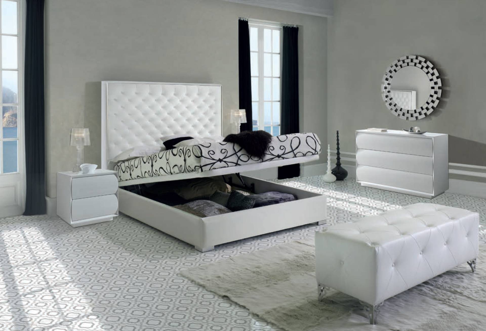 COMPLETE BED WITH STORAGE DIVAN AND GAS LIFTING MECHANISM.