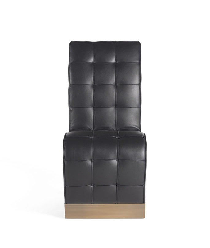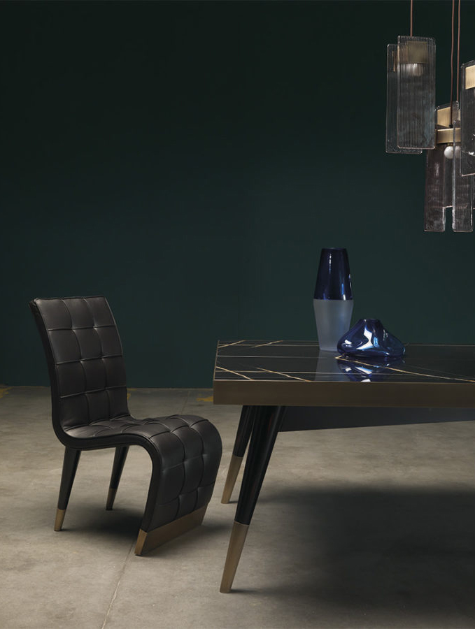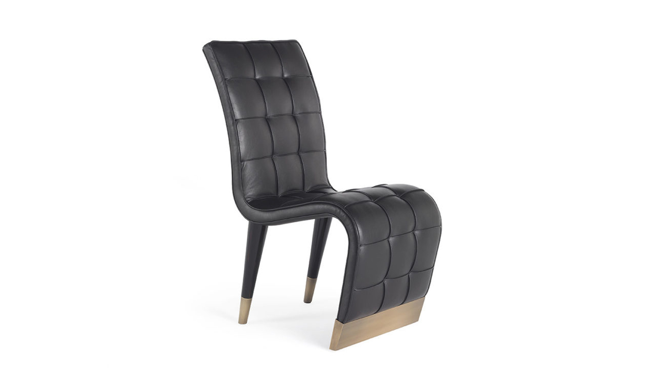 Sinuous lines and refined personality: these are the main characteristics of the Bonnie chair, whose original shape with the backrest continuing on the seat is enriched by an elegant capitonné manufacturing. The sloping legs, made of wood and with bronzed brass tips, contribute to lend the Bonnie armchair an exclusive and timeless charm.