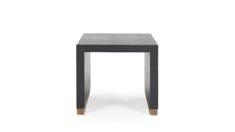 Leather and metal: contrasting textures and materials for a table with a minimalist yet sophisticated design, characterized by the soft leather upholstery and by the bronze finish of the bases. The combination with the Flair table allows you to create original geometric compositions.