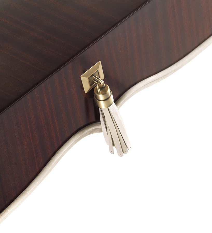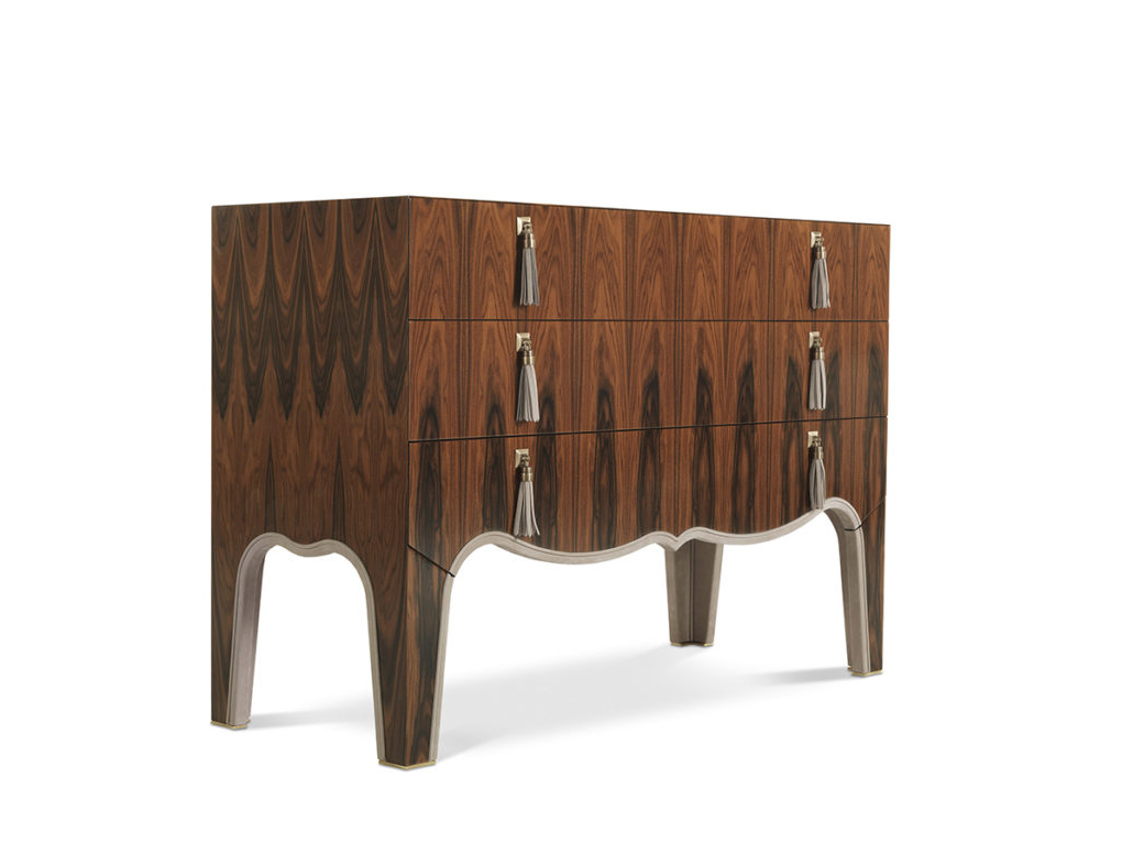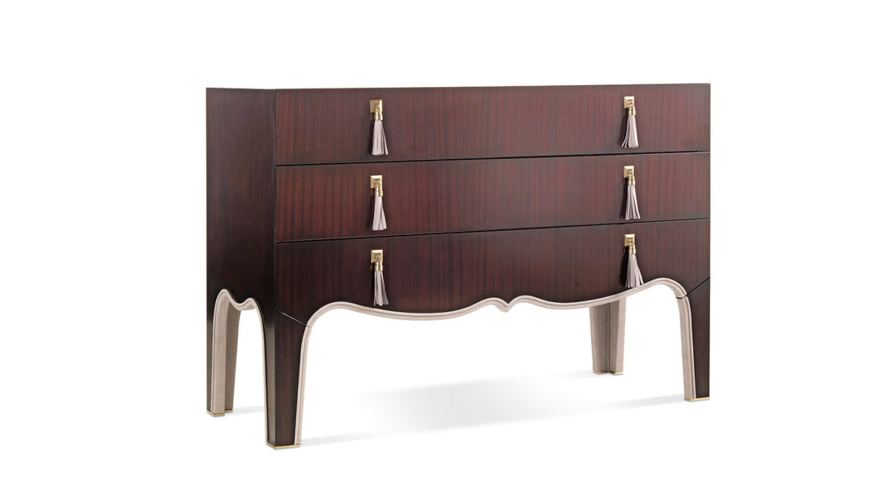 Chest of drawers with sructure in multilayer poplar with mahogany finishing. Details in leather cat. B | L.08.01. Handles in metal and leather cat. B | L.08.01.
