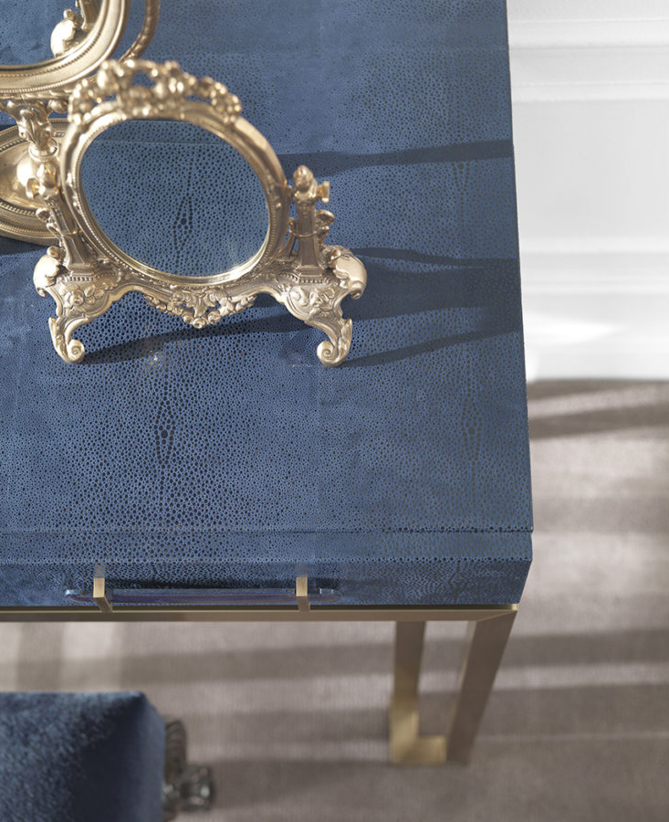 Night table with metal base in bronzed finishing. Upper structure in multi-layer poplar covered with leather cat. B | L.03.02. Leather handle.