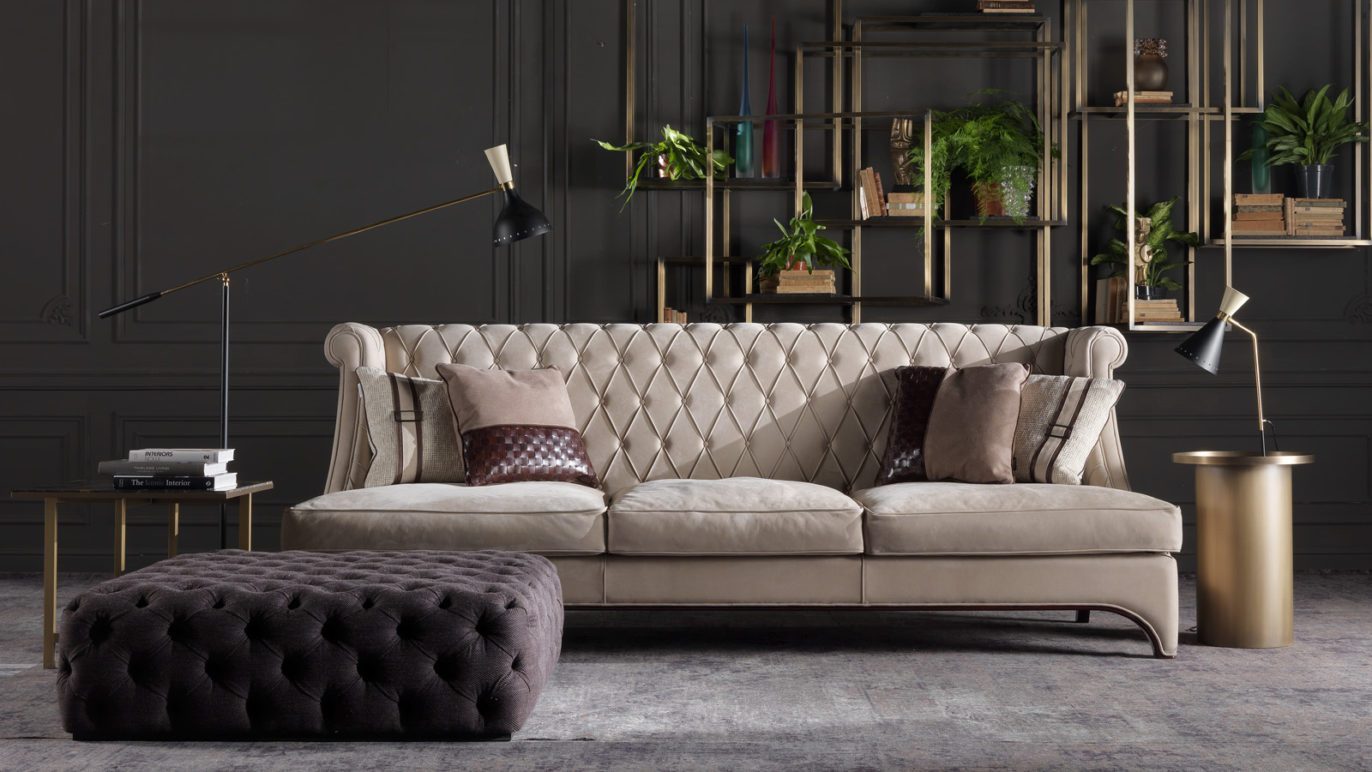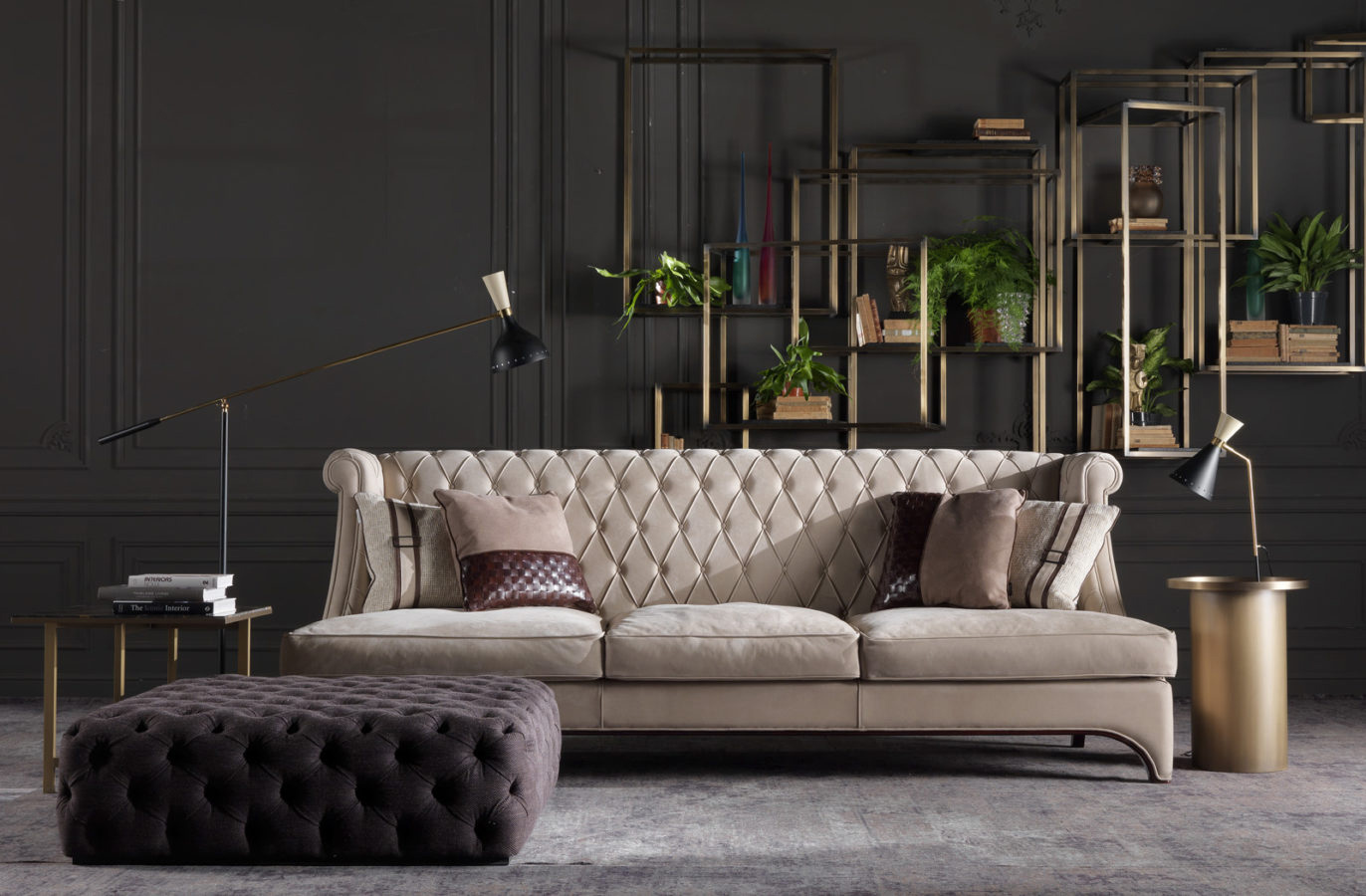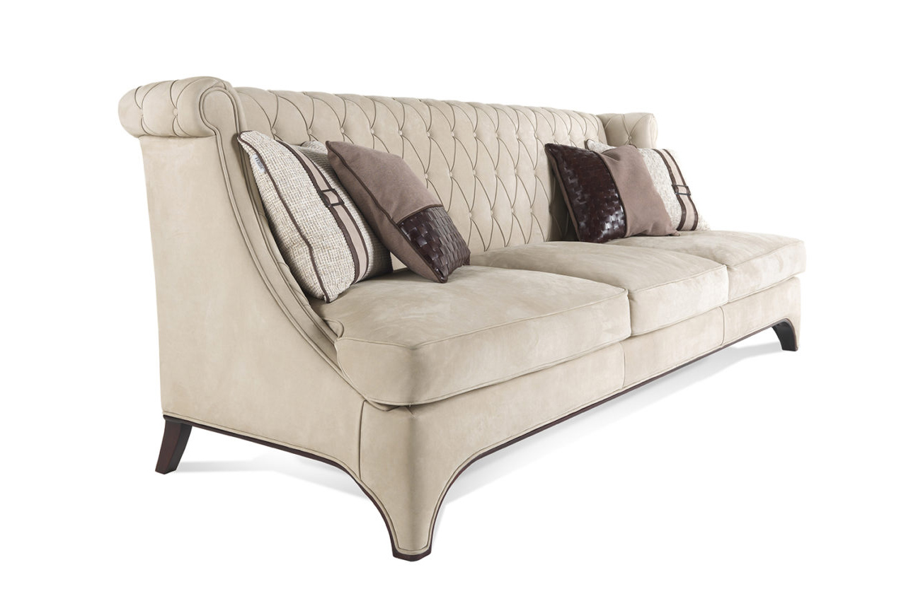 With its harmonious seatback, Bradmore sofa is characterized by a refined manufacturing with a thin border which stands out the rhombus pattern, in contrast to the homogeneity of the wide and comfortable sitting cushions. An accurate sartorial manufacturing framed by an elegant mahogany insert at the base.