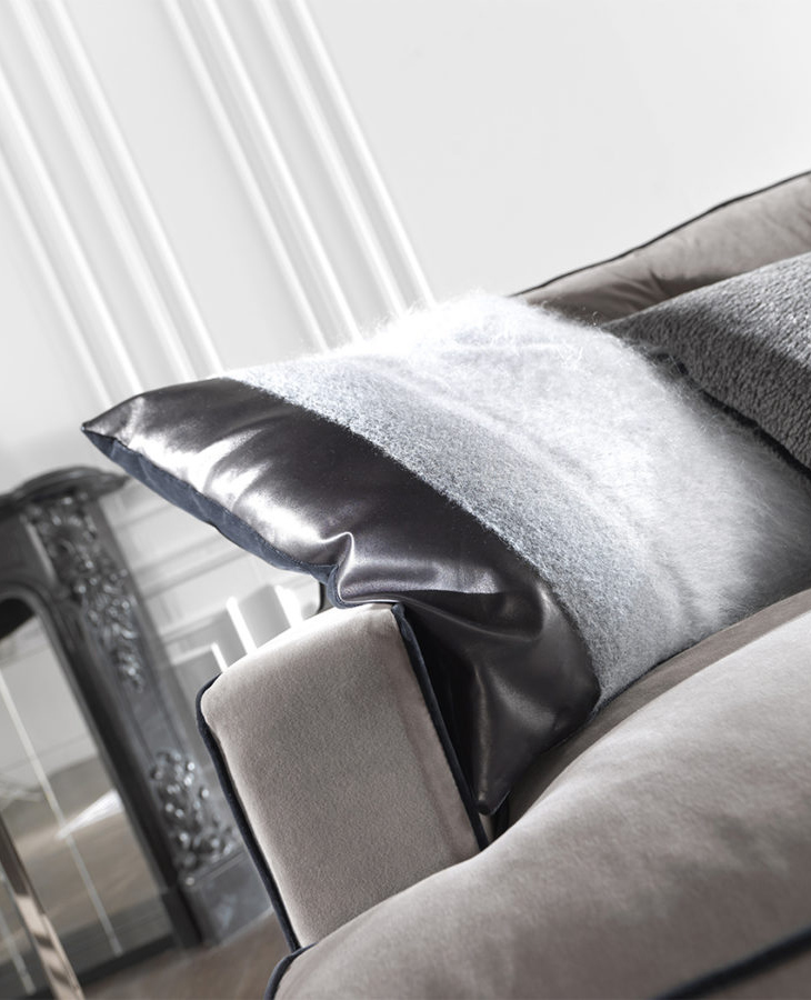 Clark sofa: a perfect match between vintage charm and contemporary style. A unique base on which are located the modern cushions, enriched by the contrast piping in typical Gianfranco Ferré style. Perfectly at home in any environment, it brings understated elegance to settings that reflect different tastes.
