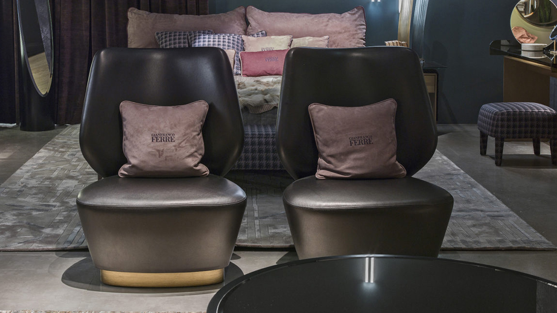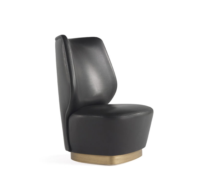 Retro taste and soft and rounded shapes for the Marvila armchair. The refined elegance and compact proportions are enhanced by the base with bronzed finishing, a detail that gives the whole a sophisticated decorative appeal.
