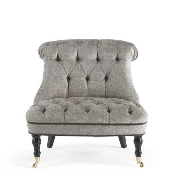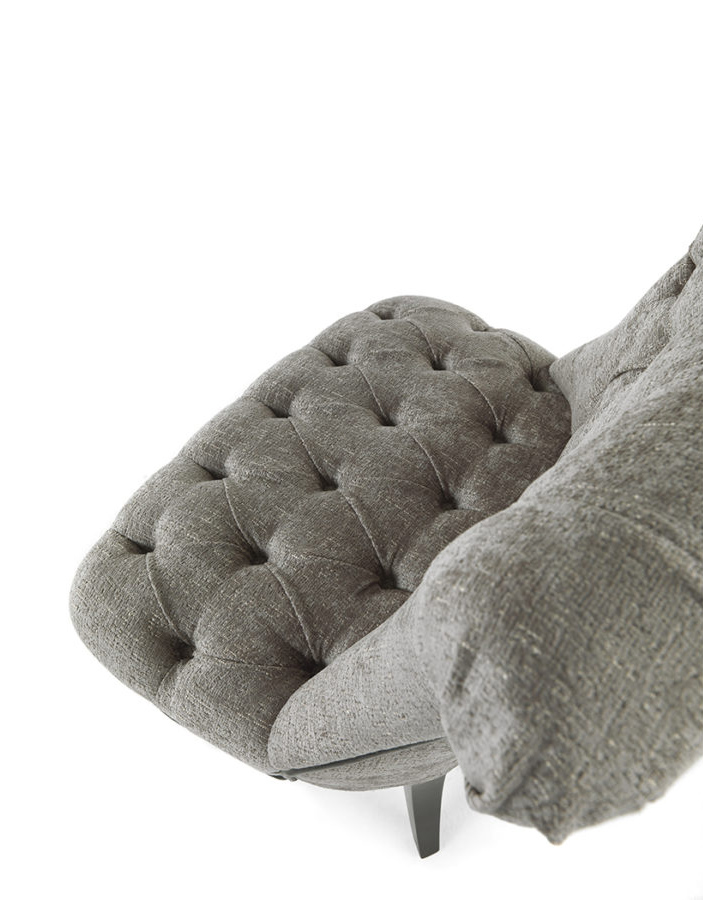 The vintage charm of the capitonné finishing in a modern and versatile interpretation. The original lines of the Norma armchair meet the British charm of the upholstery and the classic detail of the front legs of Louis XV with casters for an unpredictable contemporary result.