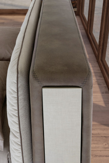 Concision implies utility, and the argument is hereby unfolded by a fresh design: ancient elements relate to modern ones, and Donovan makes no exception with its vintage glares. A refined quilting with retrĂ² recollections ennobles the outline of the headboard; the latter is not anymore a mere structural component but rather it has become a valuable chest that serves as storage compartment - together with its miniature foldable shelves. This is truly a different way to revive the concept of bedside tables.