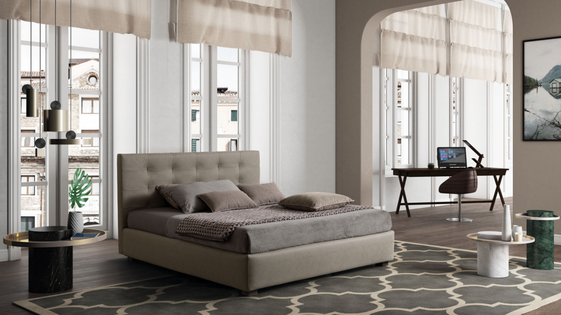 Thanks to the delicate flair of its quilting, Tender makes a statement about the poised symmetry of volumes, which gives this padded bed a sweetly and reassuring outline. Both the softness of its shapes, as well as the lightness of its construction lines, contribute to highlight a fundamental predisposition: structure shall be balanced, and there shall be no three-dimensional force that lacks appropriate anchoring to the safe route drawn by its lateral seams.