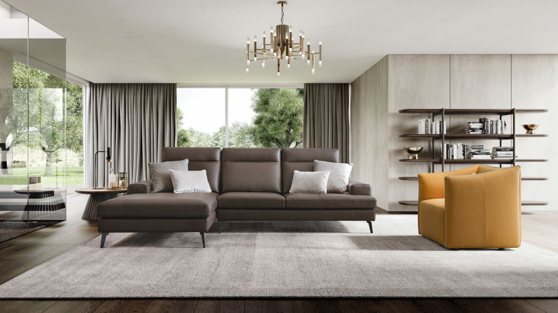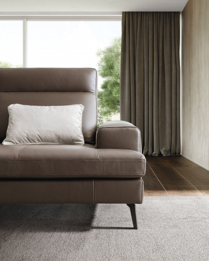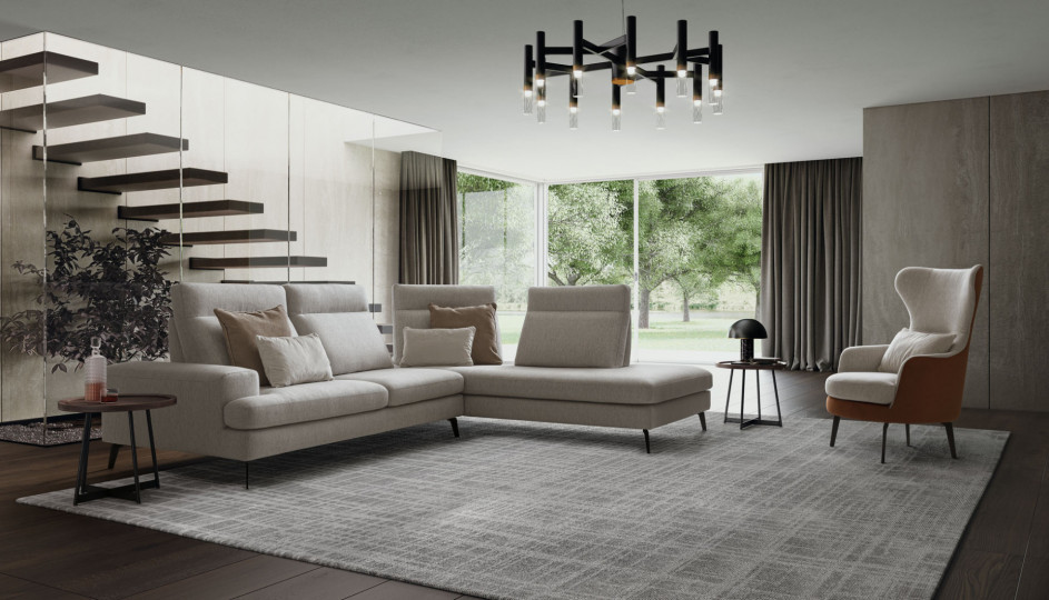 The living room says goodbye to monotony, welcoming the exuberant originality of this sofa. Emmet breaks all ties with ordinary sofas: thanks to the sliding backrest mechanism, it is possible to adjust the depth of the seats and to remove the one on the corner of the lounging unit.