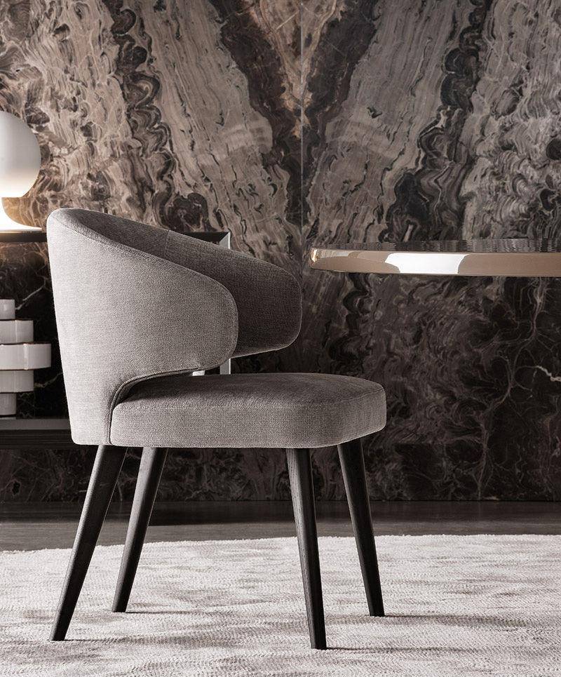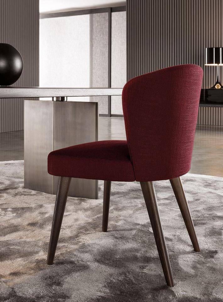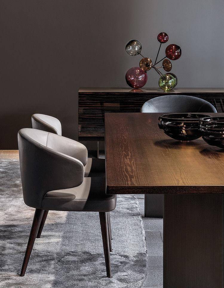 Aston “Dining” is a chair that envelopes you, inviting you in, to experience its innate elegance and comfort. The soft padded structure rests on tapered solid ash legs with open pore Tobacco stain or open pore lacquer Moka finish.