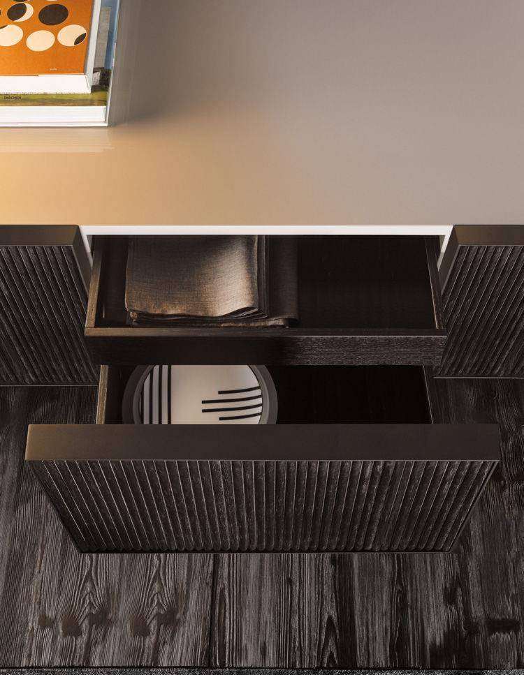 The fine craftsmanship inherent in the Aylon storage units emphasizes the poetically tactile qualities of wood and revisits the great cabinet-making tradition in a contemporary key.
