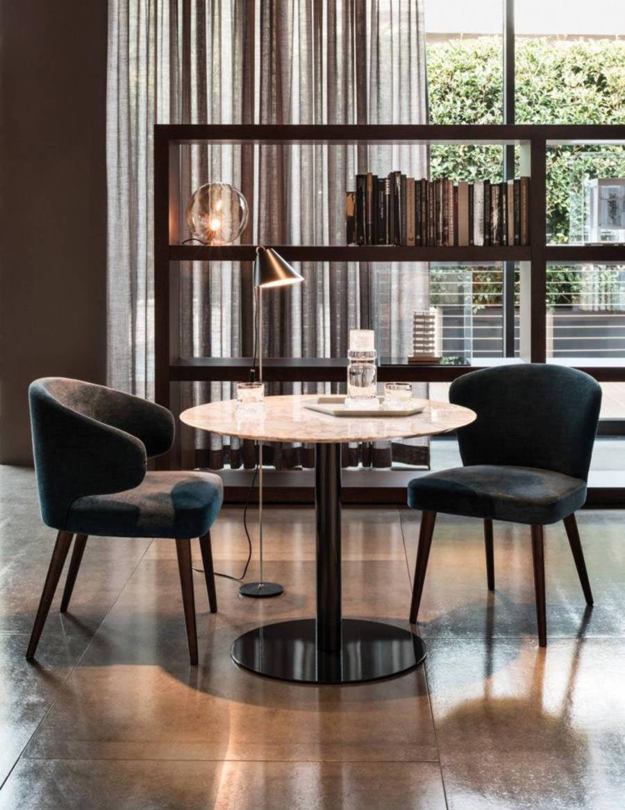 The Bellagio “Bistrot”, with the inherent lightness of design and purity of line that characterize the entire Bellagio collection, is expressed in a new version that multiplies its possible uses. Bellagio “Bistrot” comes with a glossy painted metal frame in Pewter color and 90 cm diameter top in Calacatta marble.