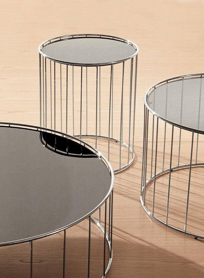 Three coffee tables with a natural bent for lightness. The emphasis could be on the design of empty spaces, since the use of materials has been reduced to the smallest possible extent. Thin columns supporting the minimal surfaces are all that is left. What a character, what expressive power, anyway! “Less is more“.