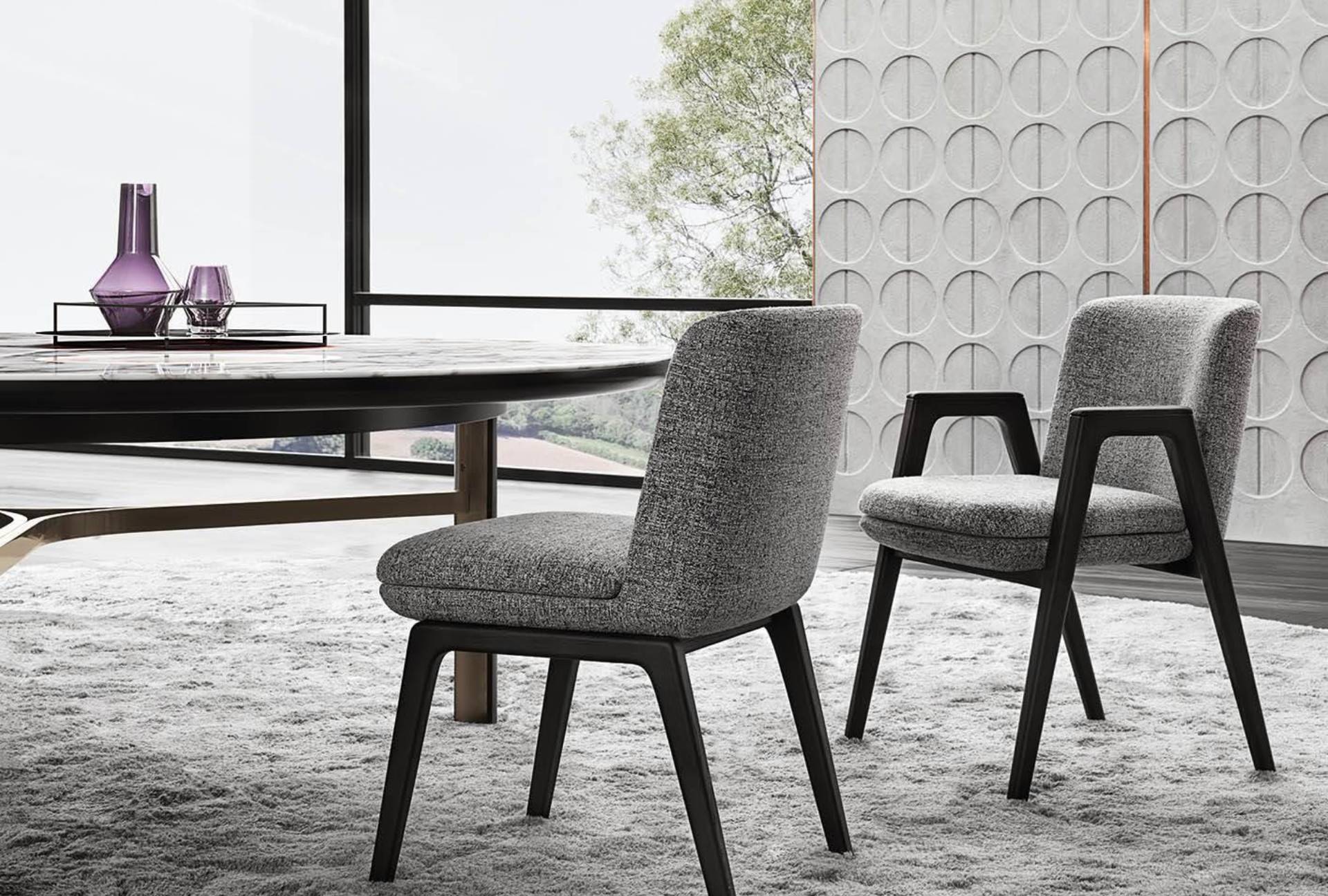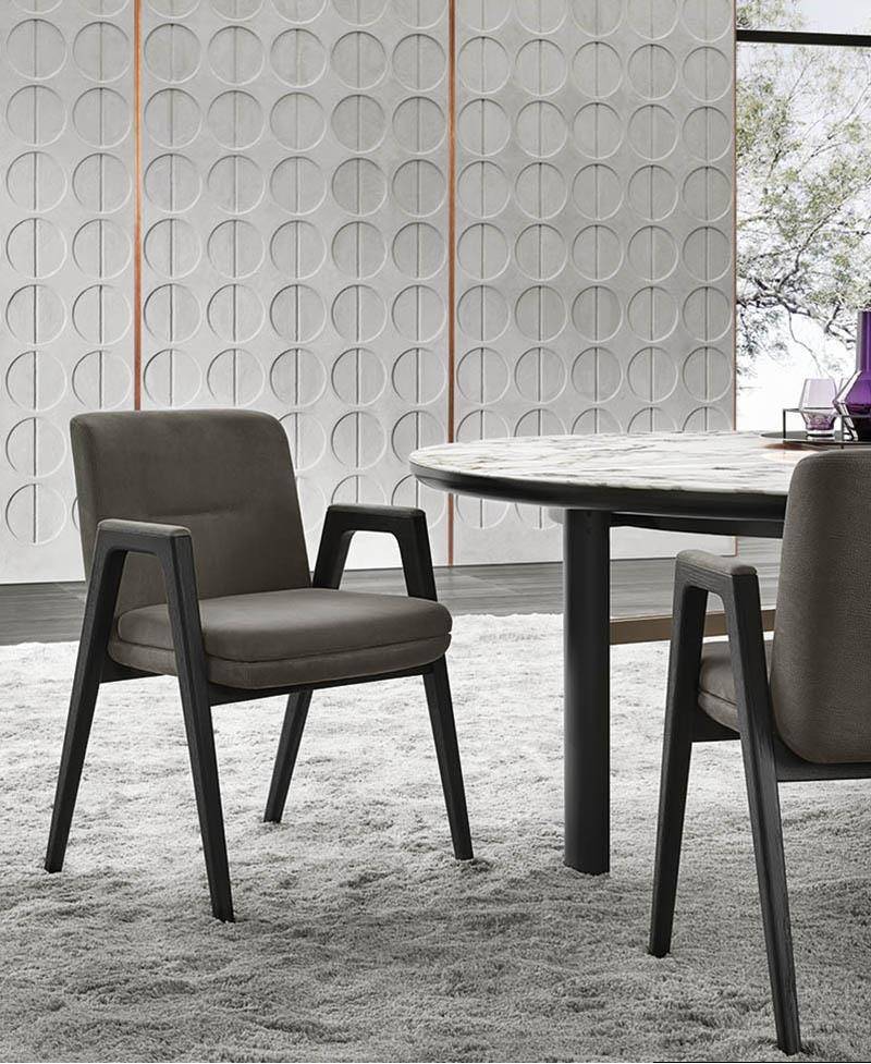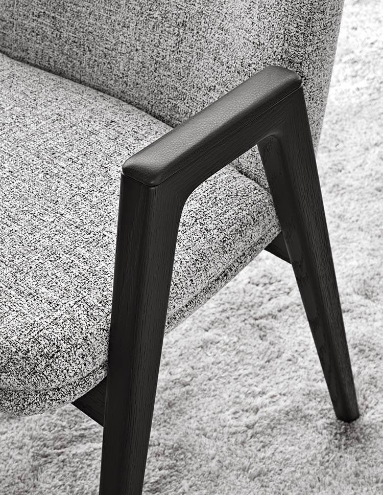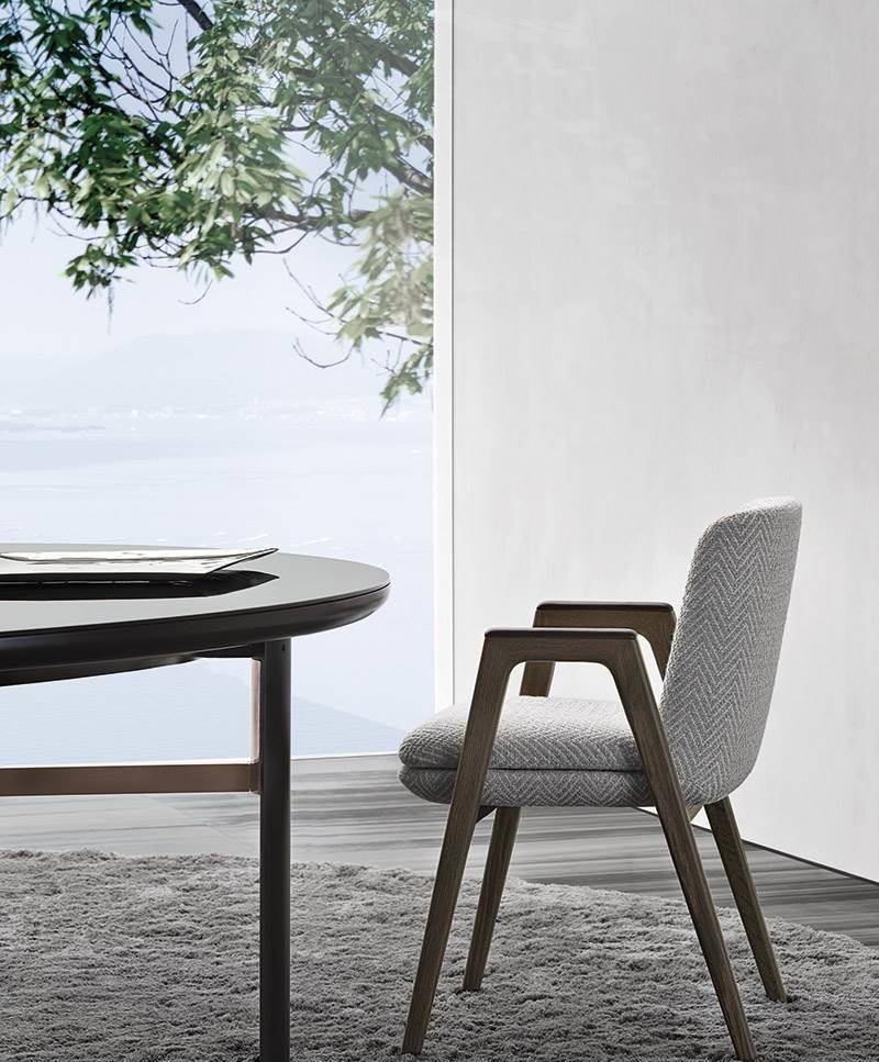 The comfort and the measured proportions characterize Lance, a dining chair with a rigorous and neutral design. Thanks to its timeless shape it can be combined with tables of different shapes and styles. Available in two versions, with or without armrests, it has a solid oak frame painted in Moka, Mink and Dove Grey shades.