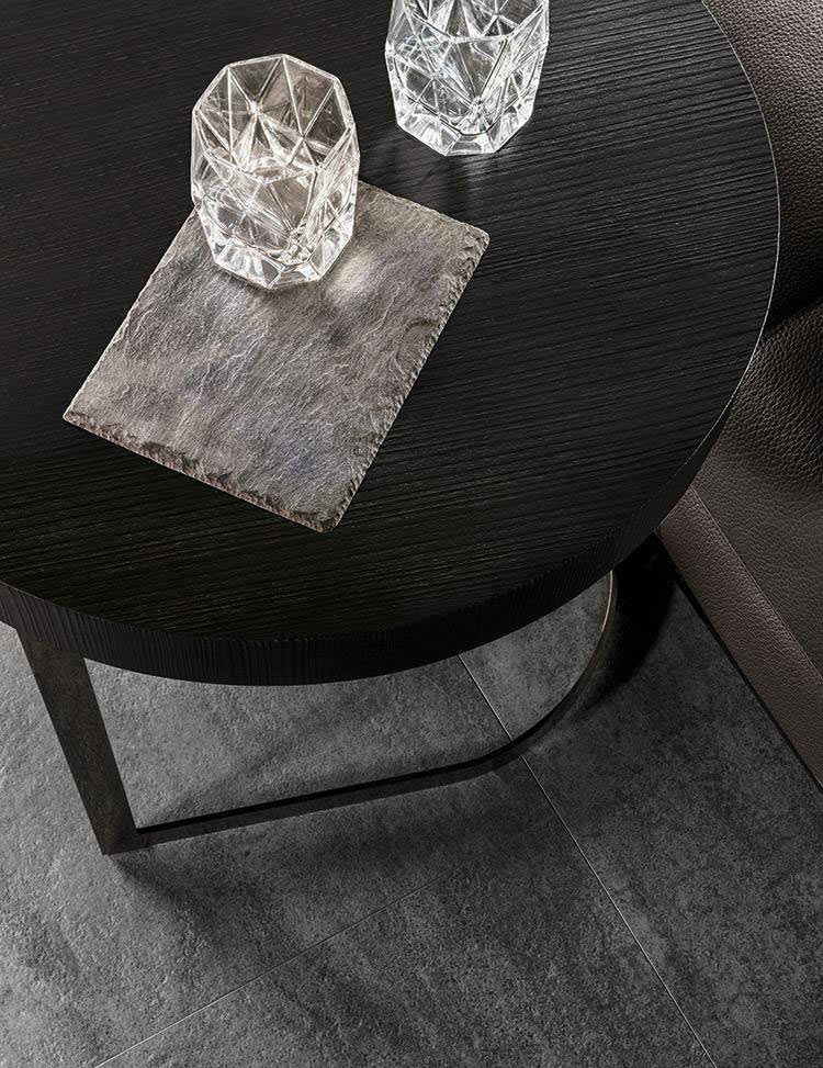 The Kay coffee table comes in two heights, multiplying its possible uses – as a complement to the sofas and armchairs, or as components for a unique layering effect with other coffee tables in the collection.