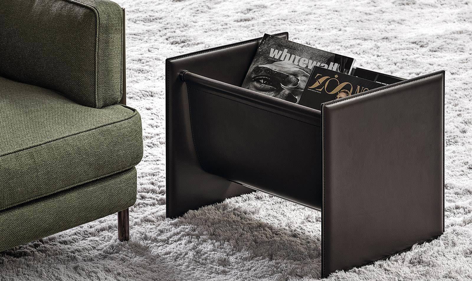 A furnishing accessory with an obvious sartorial style, designed as a satellite of the West seating system, but also perfect in other original arrangements.