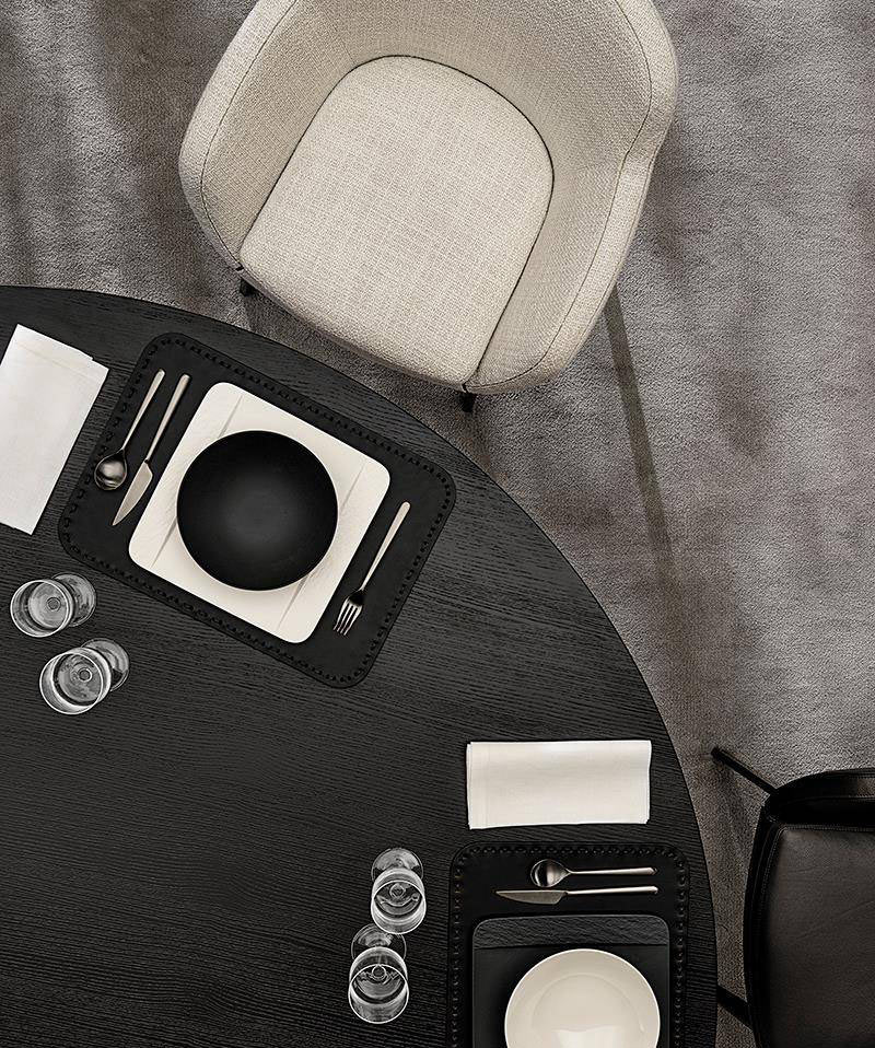 Designed by Rodolfo Dordoni, it is available with the round top in three different diameters (160, 180 and 200 cm) and a top in the shape of an elegant rectangle, with softer lines and rounded corners, in three sizes.