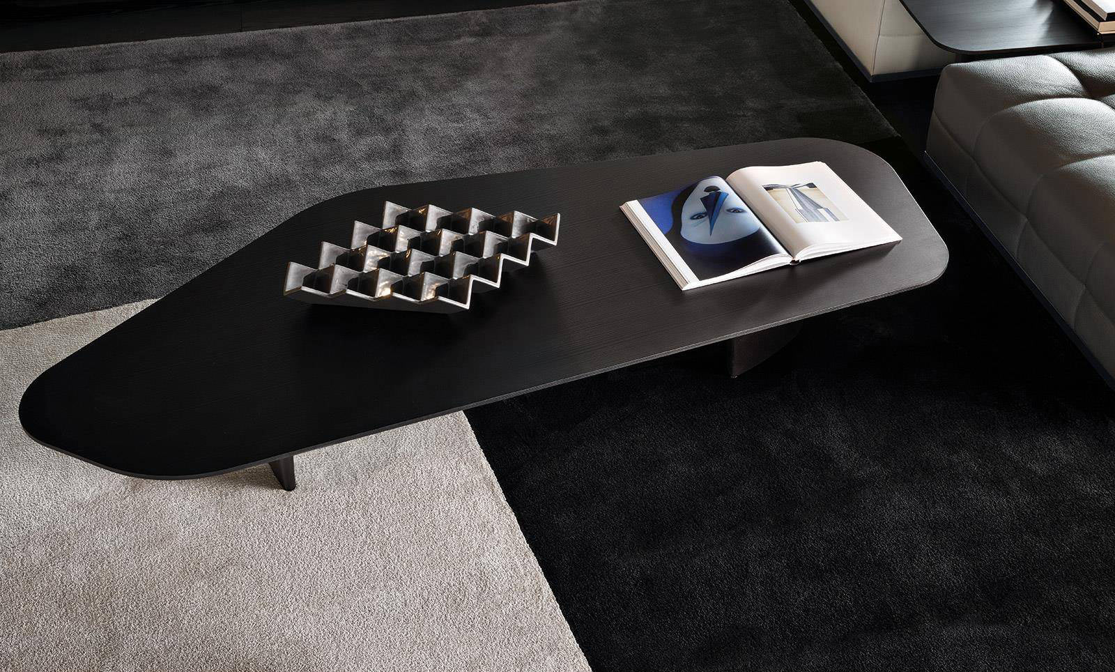 Made entirely of solid brushed ash with a painted Black finish, the base of the Song coffee tables reveals its ancestry, firmly-established in the cabinet-making tradition, while the finishes for the table tops communicate an irrepressible desire to experiment with unconventional materials and sophisticated colors, each of which can be traced back to different stylistic interpretations.