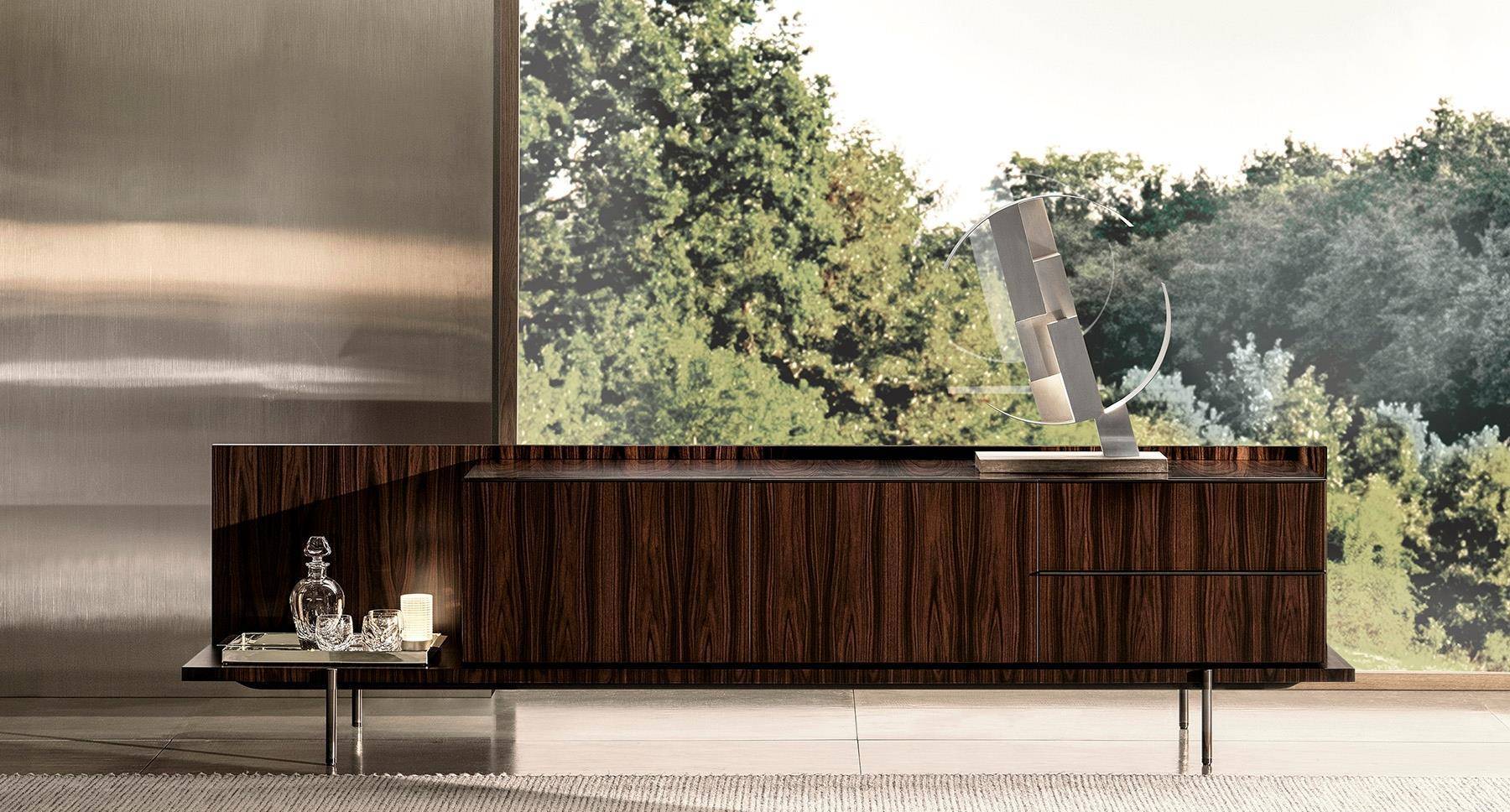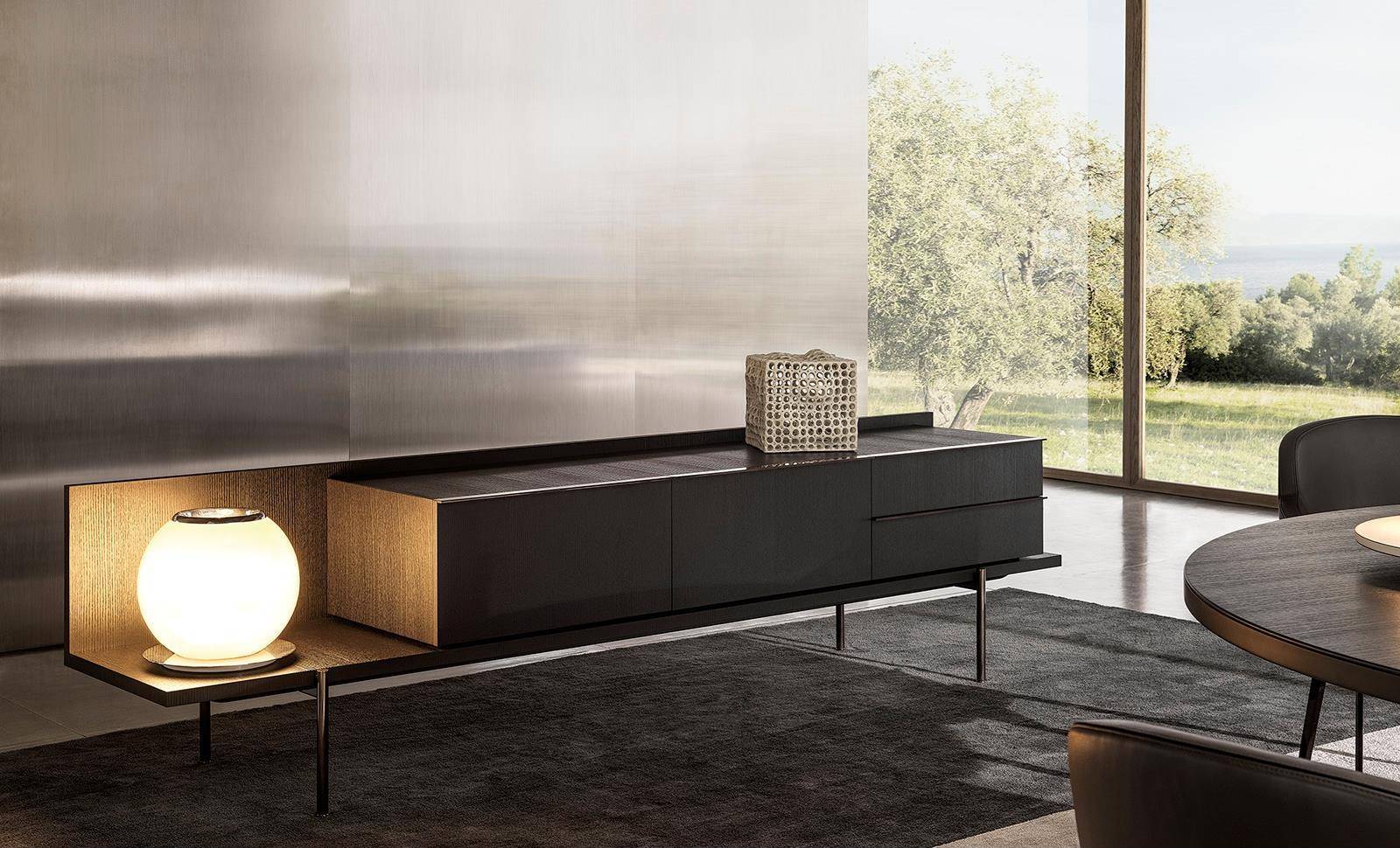 The sideboard is available in several sizes and heights, starting from the dining, living/TV and cabinet versions.