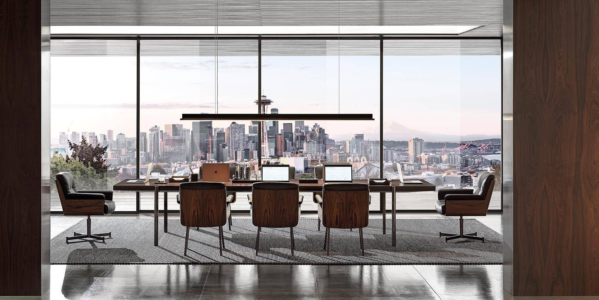 With a design capable of interpreting both the spaces at home and those of the workplace, the Superquadra table slots into high profile meeting rooms and board rooms with style.