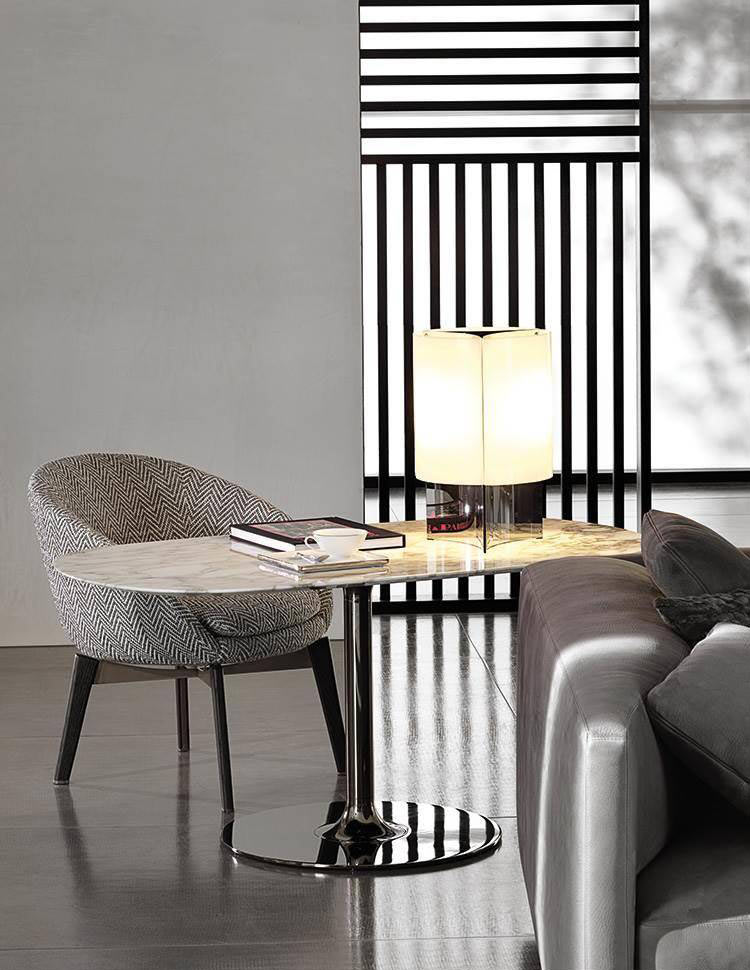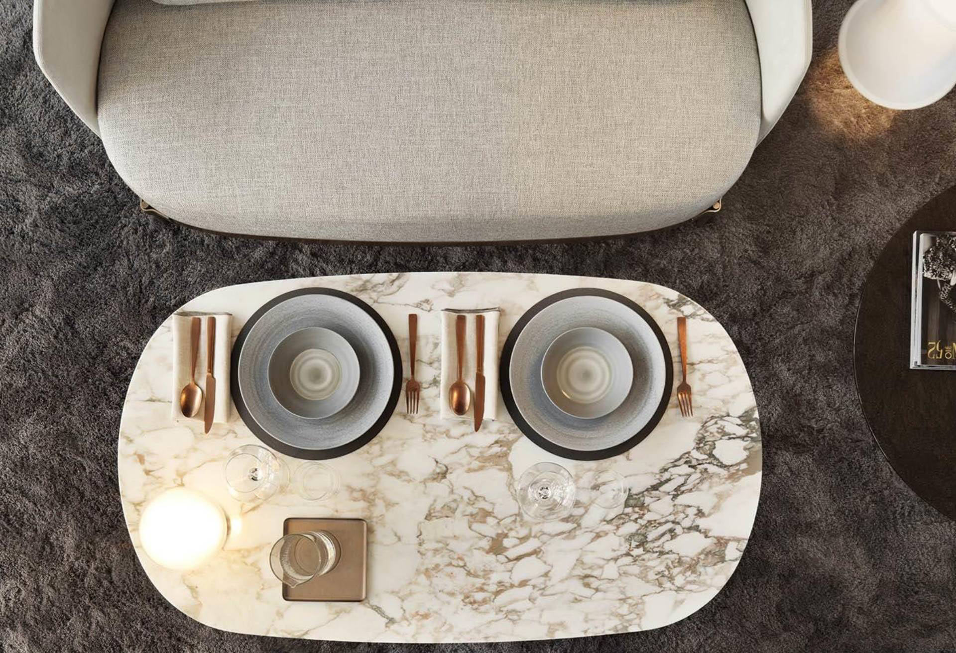 Conceived both in the lounge and side table versions, it features a precious top in Calacatta or Stone Grey marble.