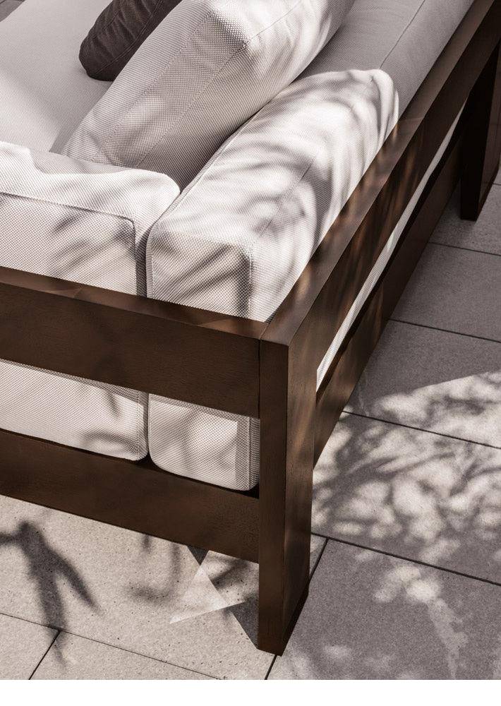 Эксклюзивная новая отделка — насыщенный оттенок коричневого — придает еще более утонченный вид диванам Alison «Dark Brown» Outdoor.
