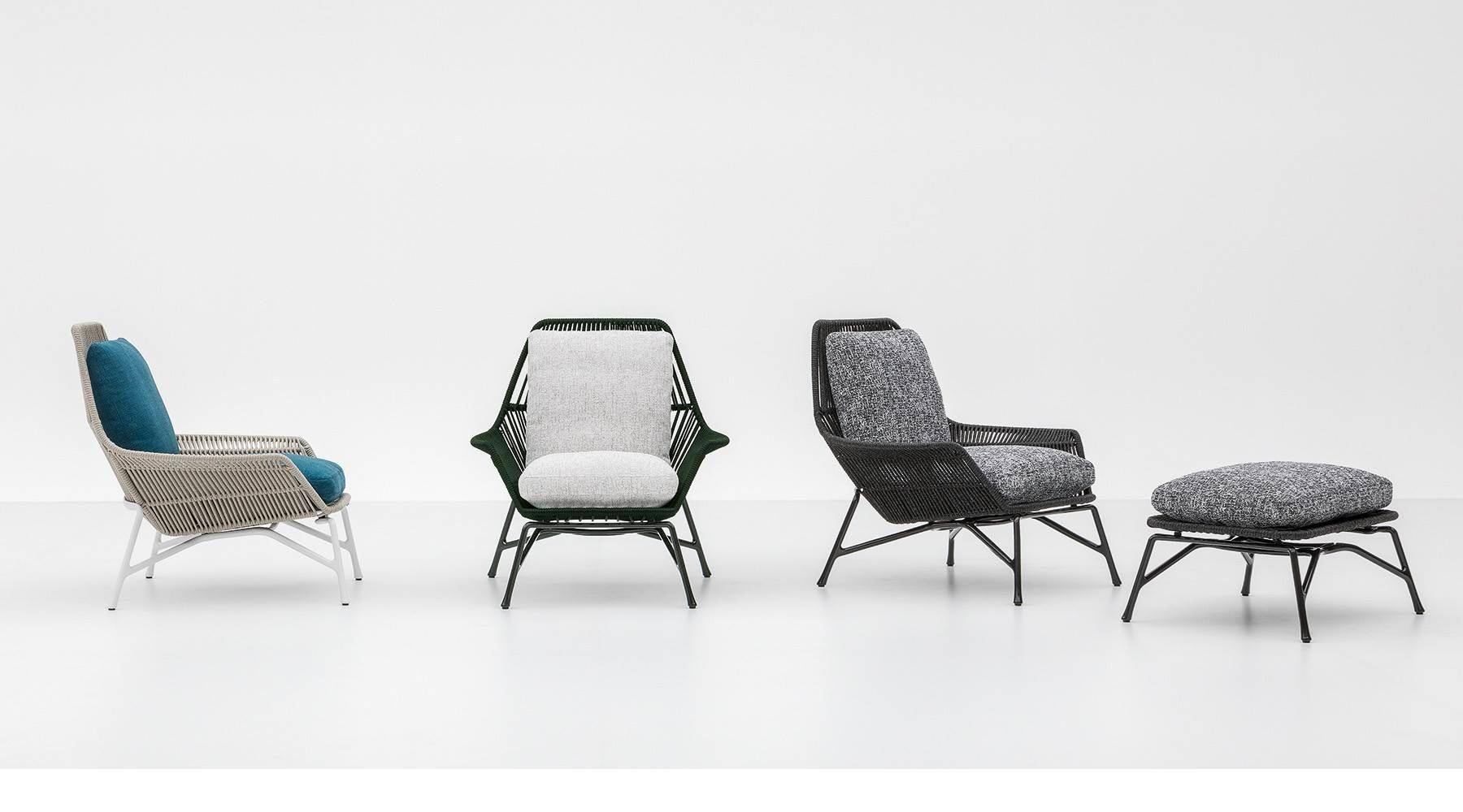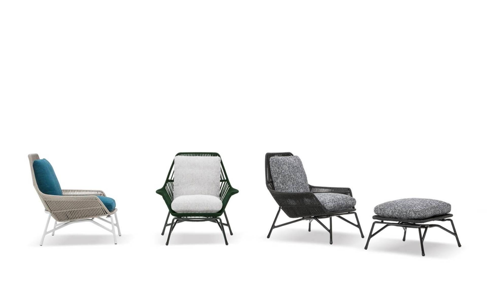 The fully removable backrest and seat cushions guarantee excellent comfort, while a footstool with the same finishes can be combined with the armchair.