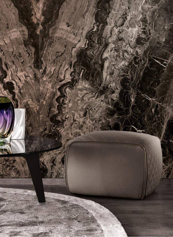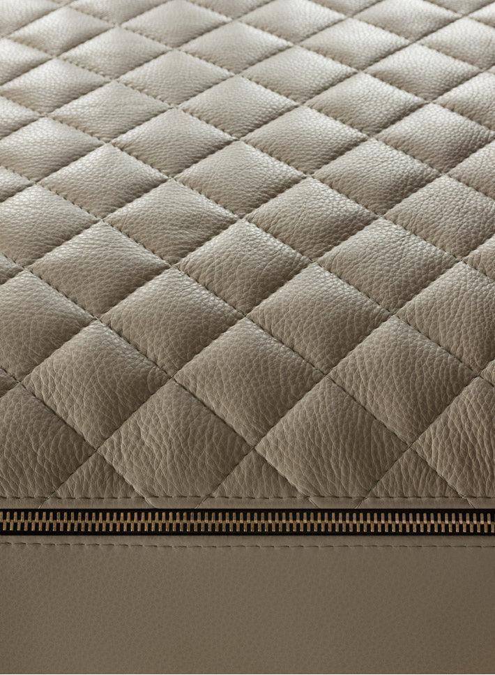 A subtle diamond motif lends an added dimension to the Ashley pouf and defines its exquisite craftsmanship while the elegant zippers in matte gold or pewter colour emphasize its soft lines.