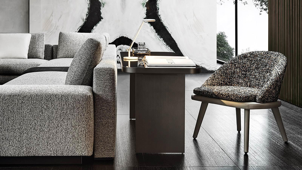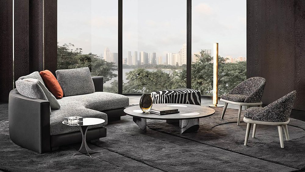 The next year, his partnership with Minotti evolved with two new designs, the Granville seating system and the Dan table, and in 2019 he created the Daniels seating system and the Amber coffee tables-low units.