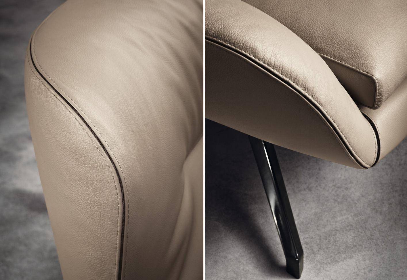 Technology, the master craftsmanship of Italian upholstering, design and comfort are all here. The frame of this contemporary wing-back chair ensures stability, while the goose down cushioning invites surrender to its softness. The caneté stitching around the perimeter of the body highlights Jensen’s design excellence, while the zipper (visible on the front of the seat cushion) adds a decorative, yet practical, note.