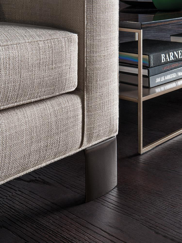 Pollock is the quintessential sofa, as designed by Minotti. With a contemporary eye, the Pollock seating system revisits the aesthetic values that distinguished the eponymous seating system, a company best-seller at the end of the ‘90s. The original high foot in metal with its distinctive design and the proportions of its shapes, outlined in elegant piping, lend decorative appeal that is perfectly poised between classicism and modernity. Thanks to die-casting technology, the design of the foot softens into more sinuous lines while the Pewter color finish accentuates its refined elegance.