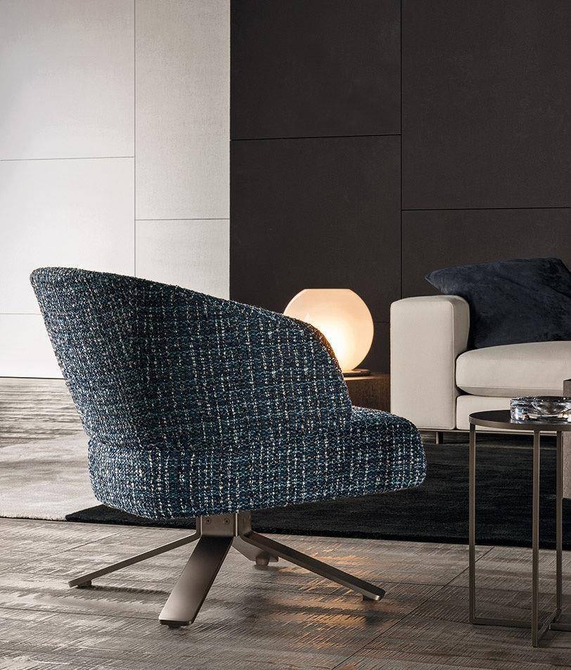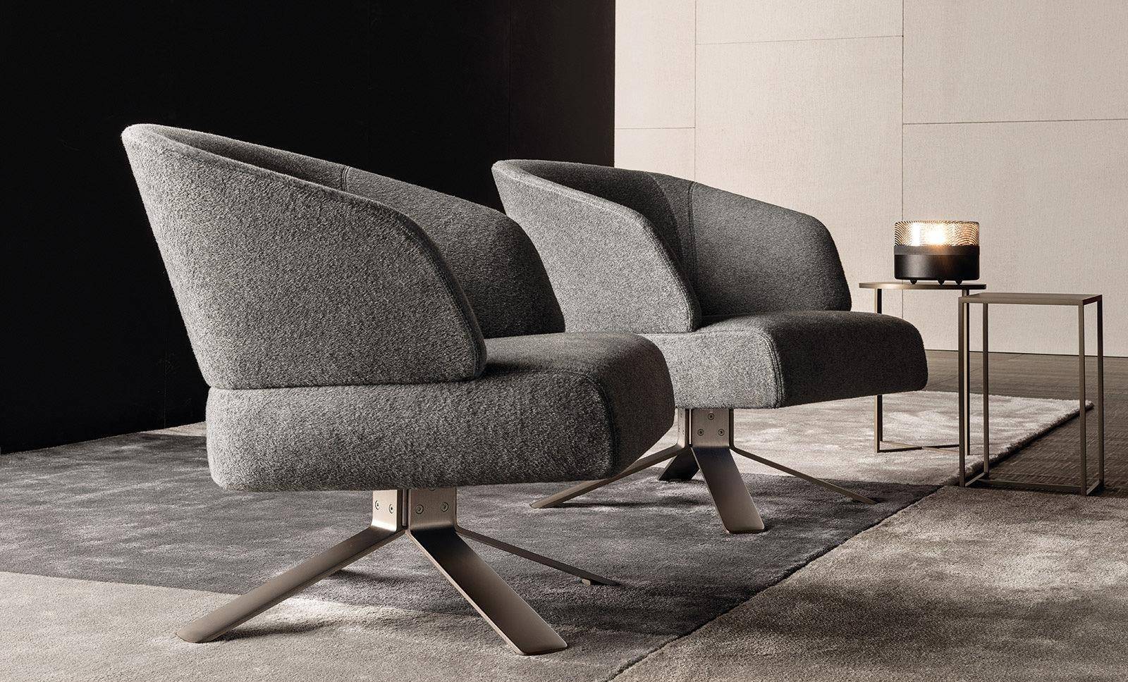 The Reeves “Small” armchair and the semi-round “Lounge” sofa are synonymous with compact size and the sophisticated constructive details that set the entire Reeves collection apart. The Reeves “Small” armchair comes with either a fixed or swivel base.