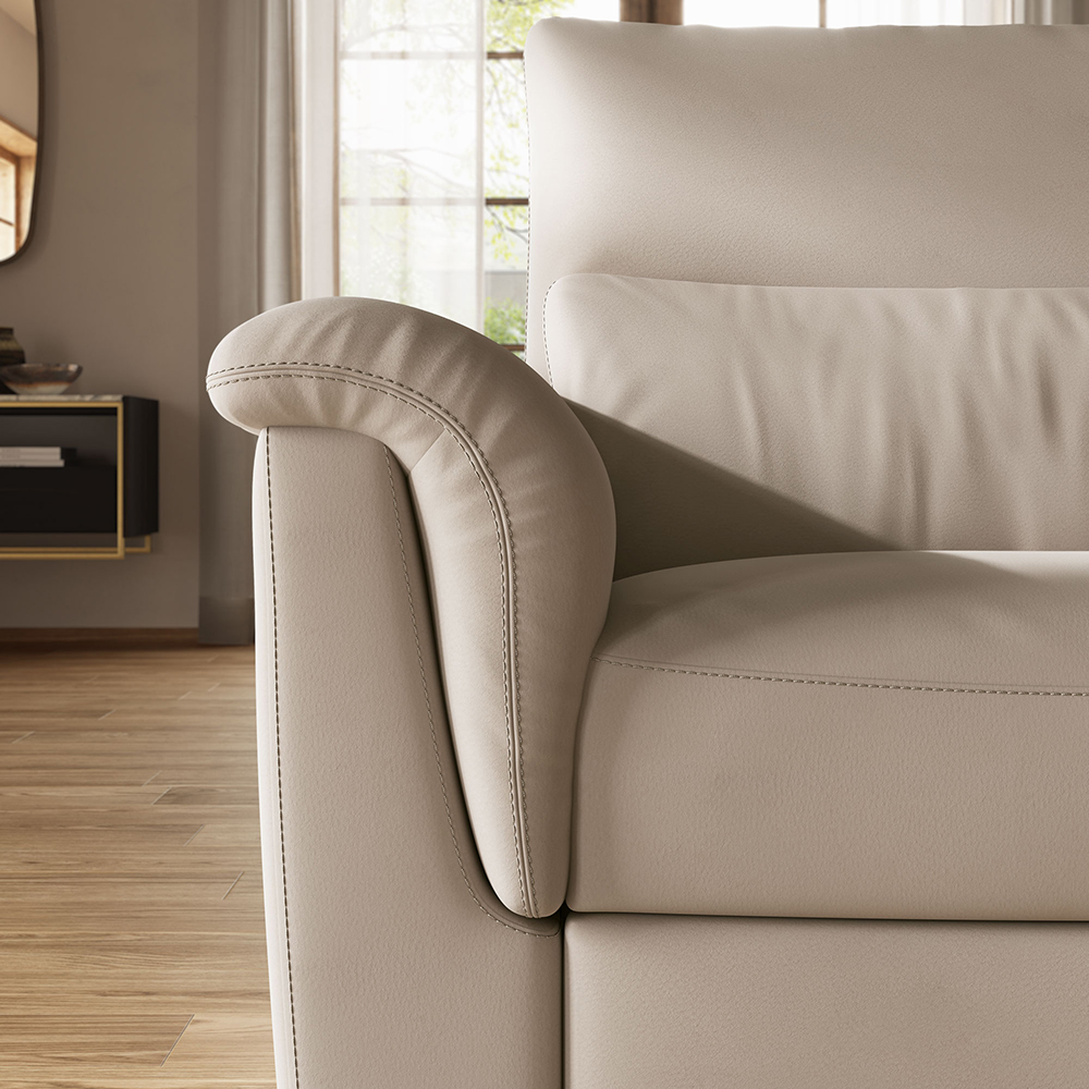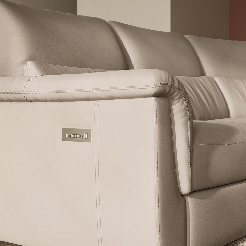 Amorevole has a casual design and welcoming shapes. It is also very wide and comfy, with a tall backrest and wide armrests, which have a square design and rounded corners, are an explicit invitation to dedicate every square inch of the sofa to comfort.