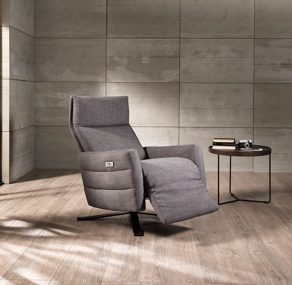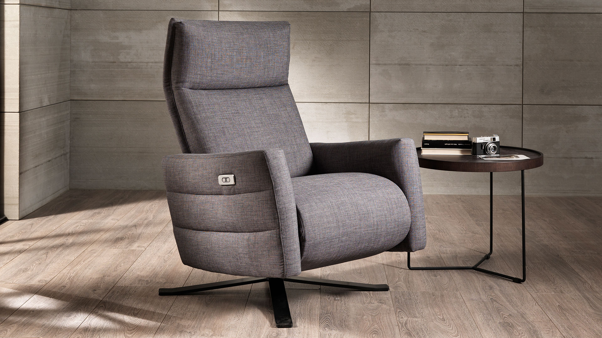 Tall backrest, solid armrests, metal swivel base, and great functional design make every task easy when sitting on a Istante armchair. Motion electric reclining mechanism, combined with a double top stitching on the sides, spruce up the Istante’s classic line with a pinch of modernity. With the rechargeable battery pack you can recline your armchair everywhere and enjoy your relax.